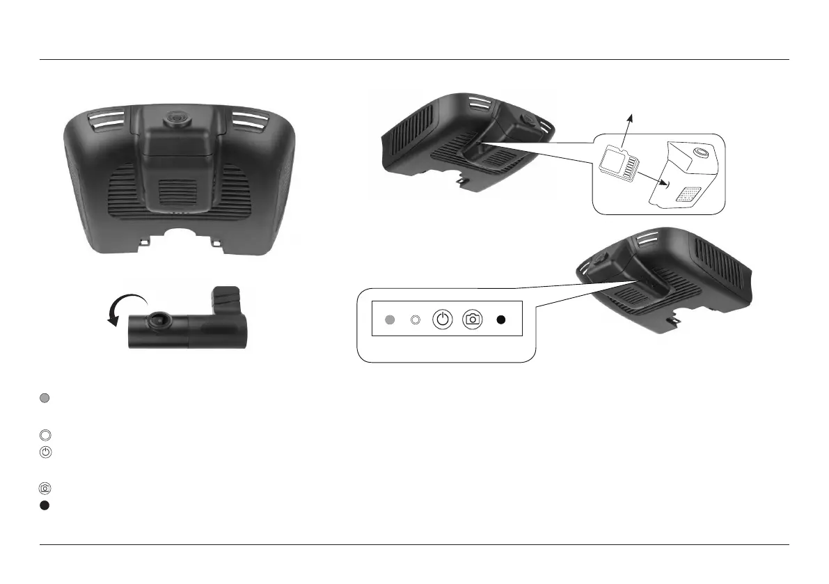 Power/Wi-Fi buon - Short press to turn OFF recording funcon temporarily. It will resume back in 30 seconds. Press for 5 seconds to turn ON/