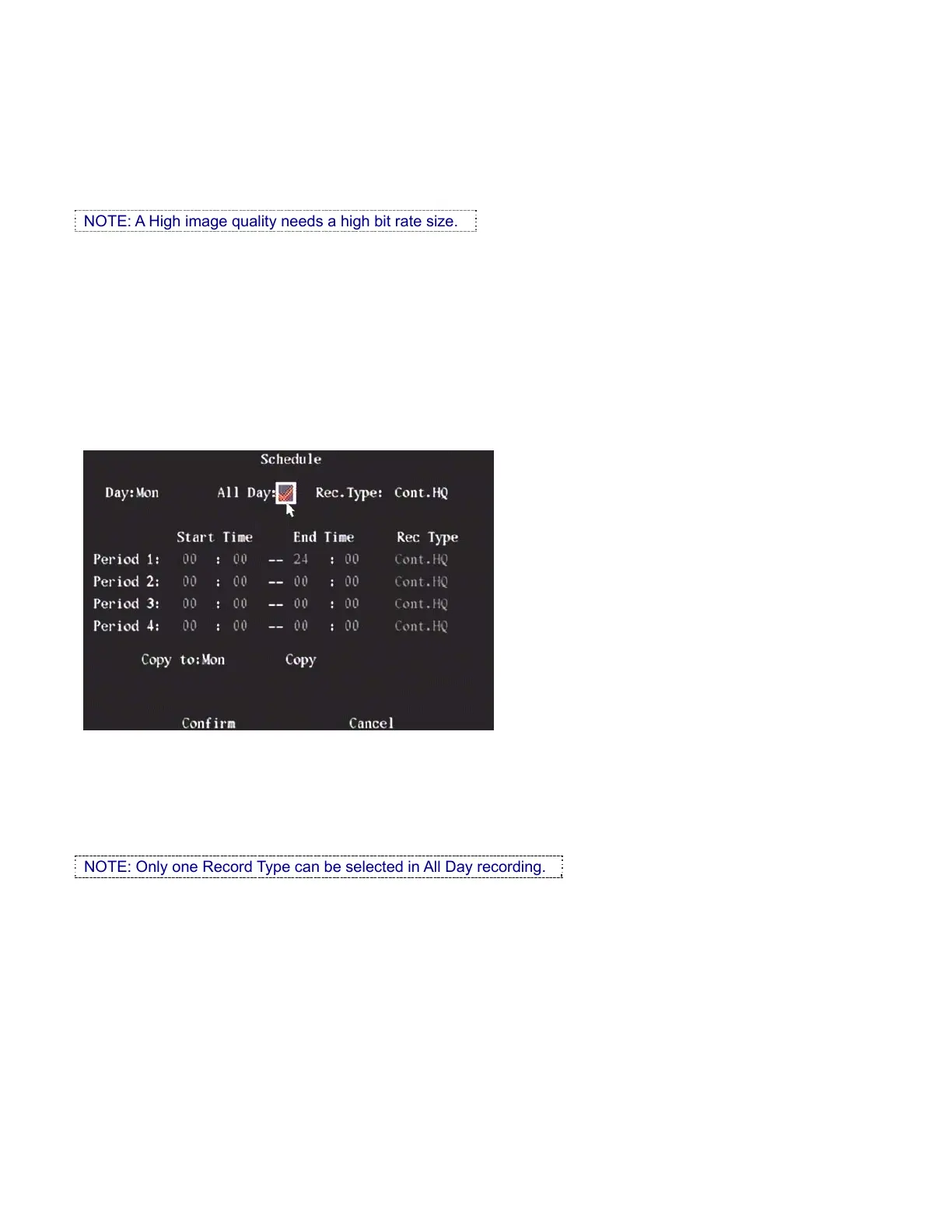 5. Highlight the Rec Type selection. Only one Record Type can be selected in all day recording.