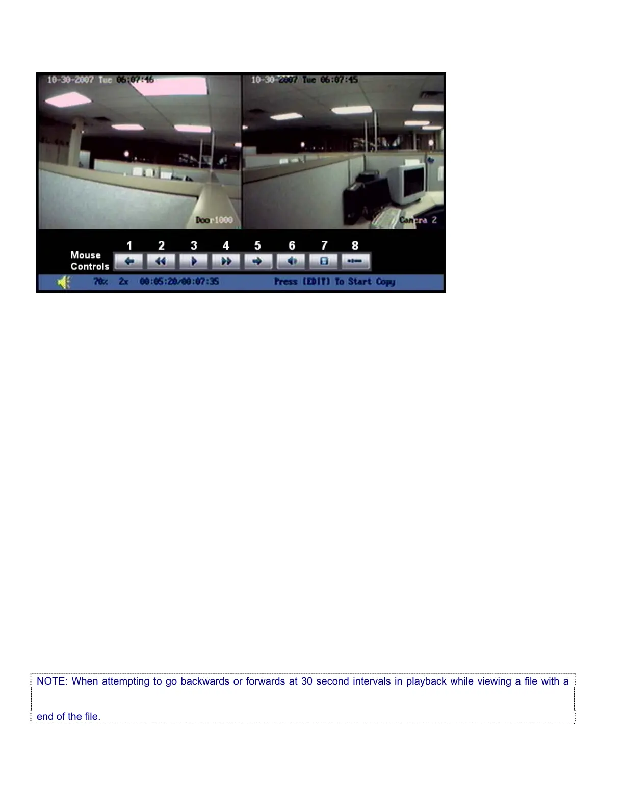 NOTE: When attempting to go backwards or forwards at 30 second intervals in playback while viewing a file with a