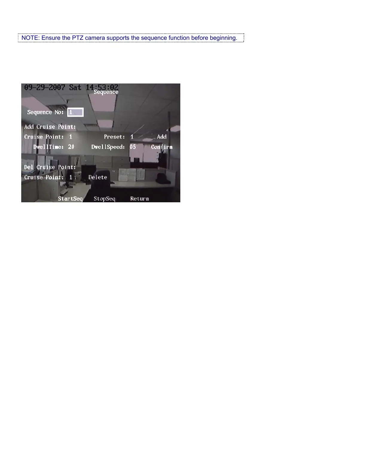 NOTE: Ensure the PTZ camera supports the sequence function before beginning.