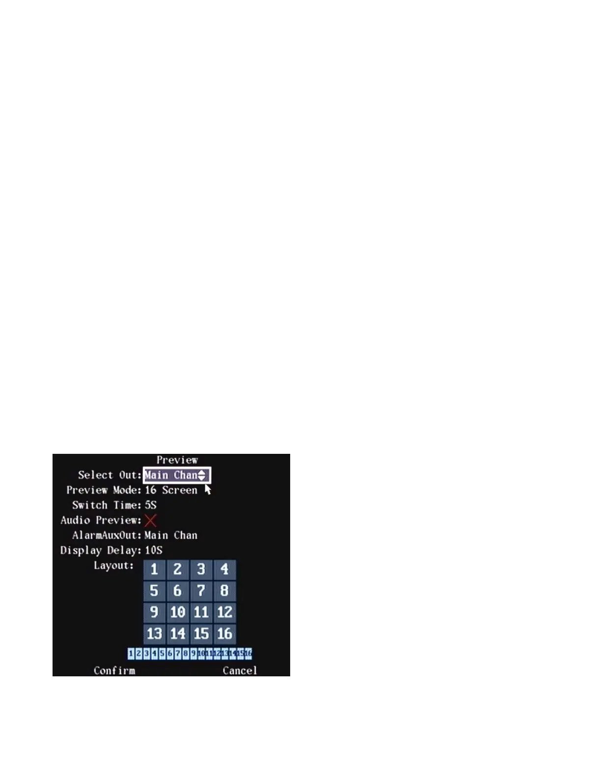 Highlight the Preview icon in the Main Menu and press “ENTER” at the DVR controls, remote control or left click with
