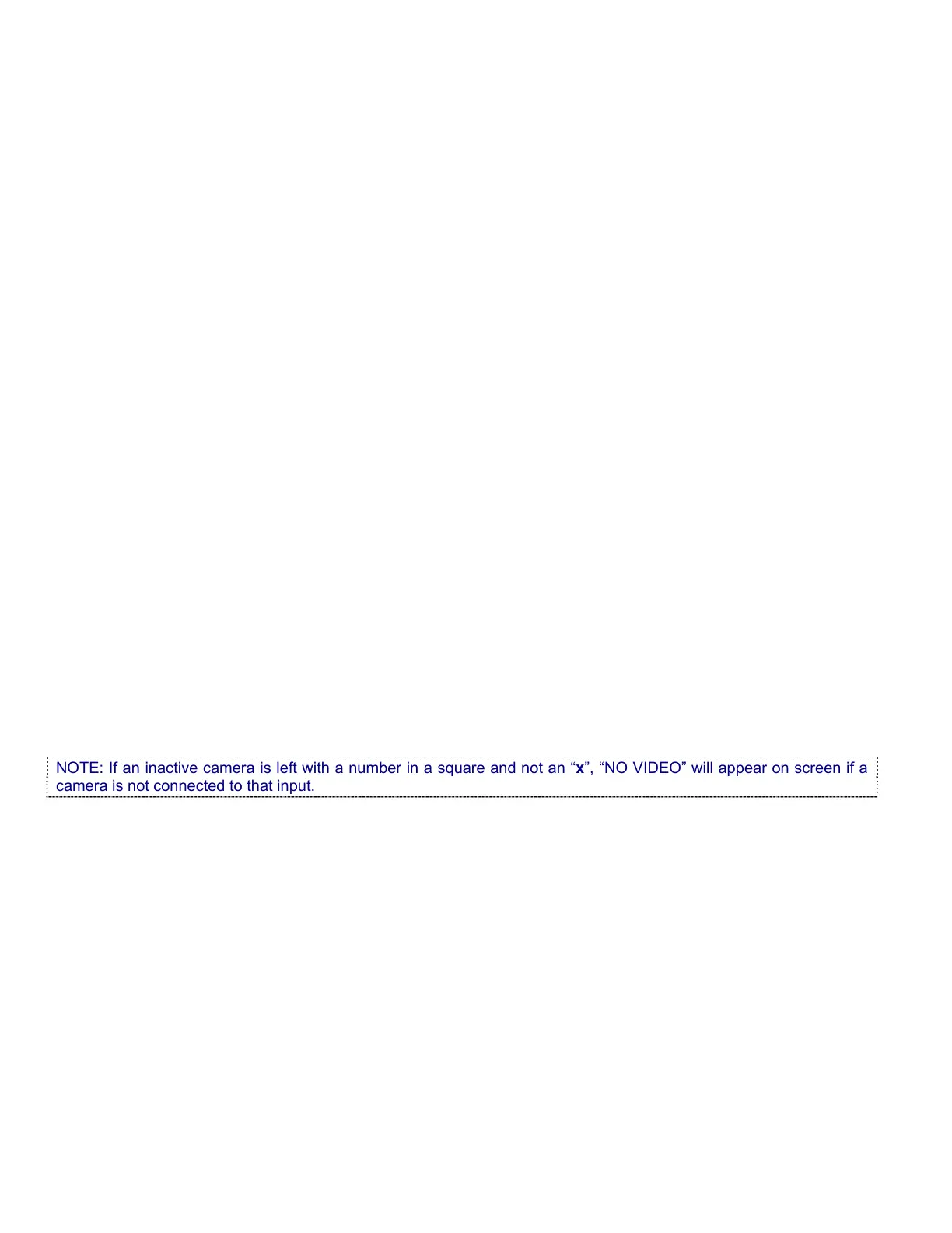 NOTE: If an inactive camera is left with a number in a square and not an “x”, “NO VIDEO” will appear on screen if a