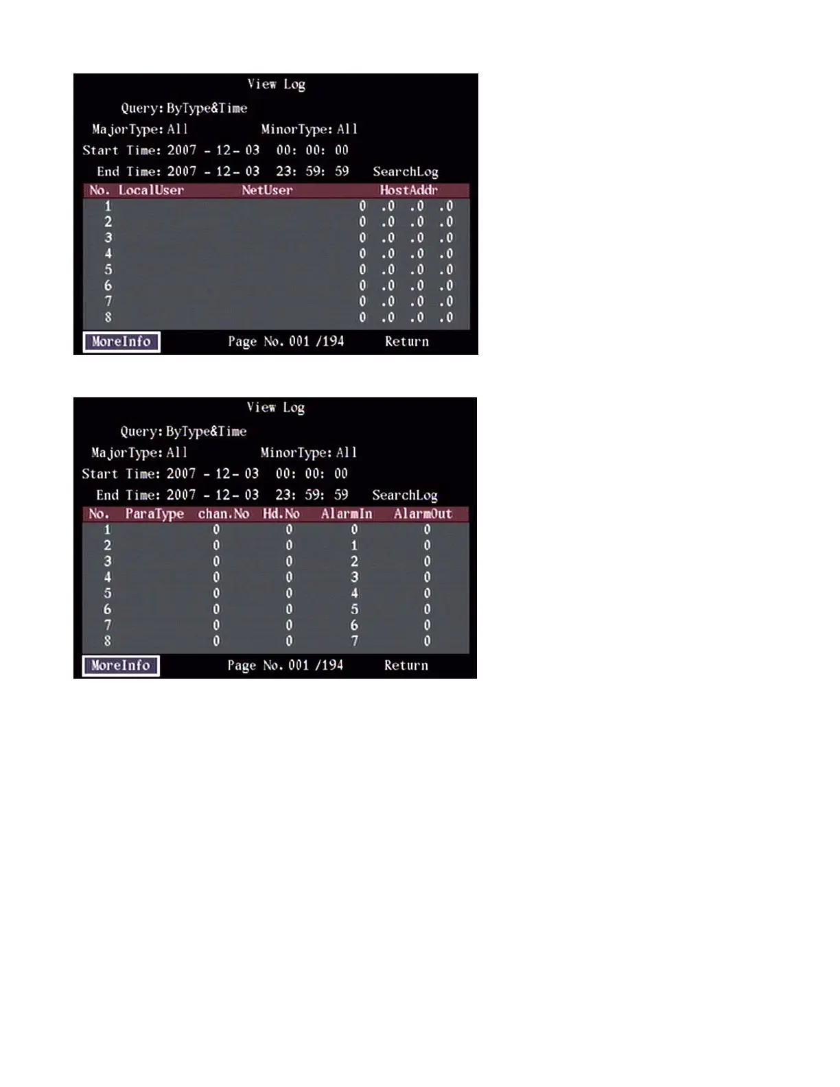 CSG Security NVeDVR - DVR Maintenance Functions; Stop AlmOut: Clear Alarm Condition; Reboot and Power Off Procedures; View Log: Accessing Event Logs