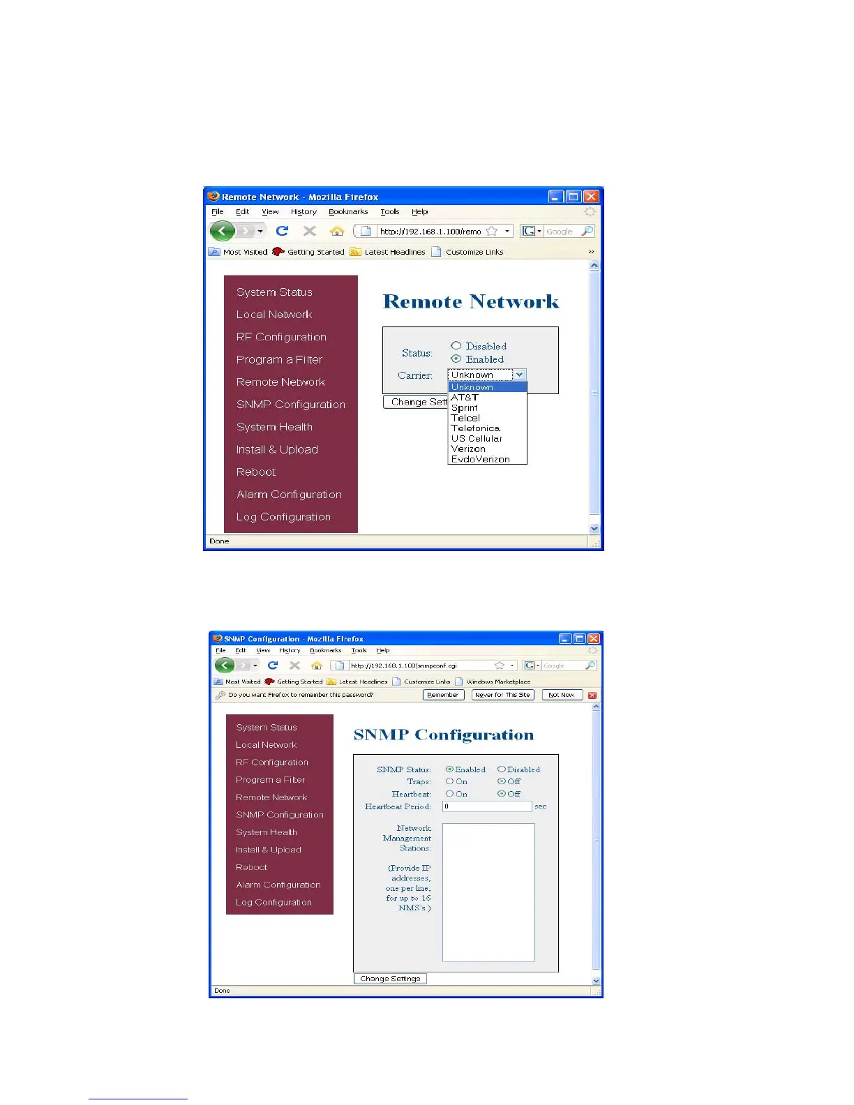 If the repeater includes a modem kit, click on Remote Network in the navigation box and the screen