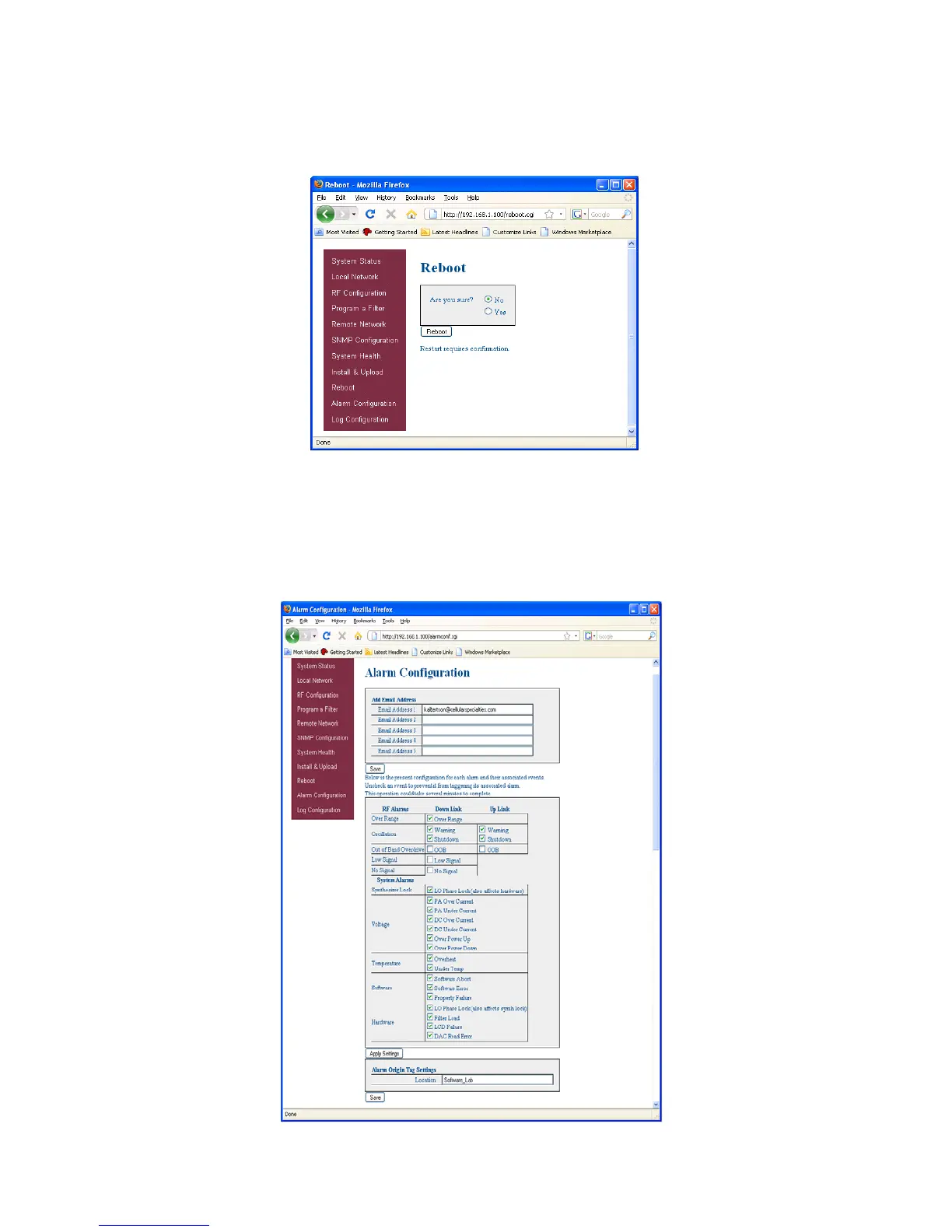 If a reboot of the repeater becomes necessary click on the Reboot option in the navigation box