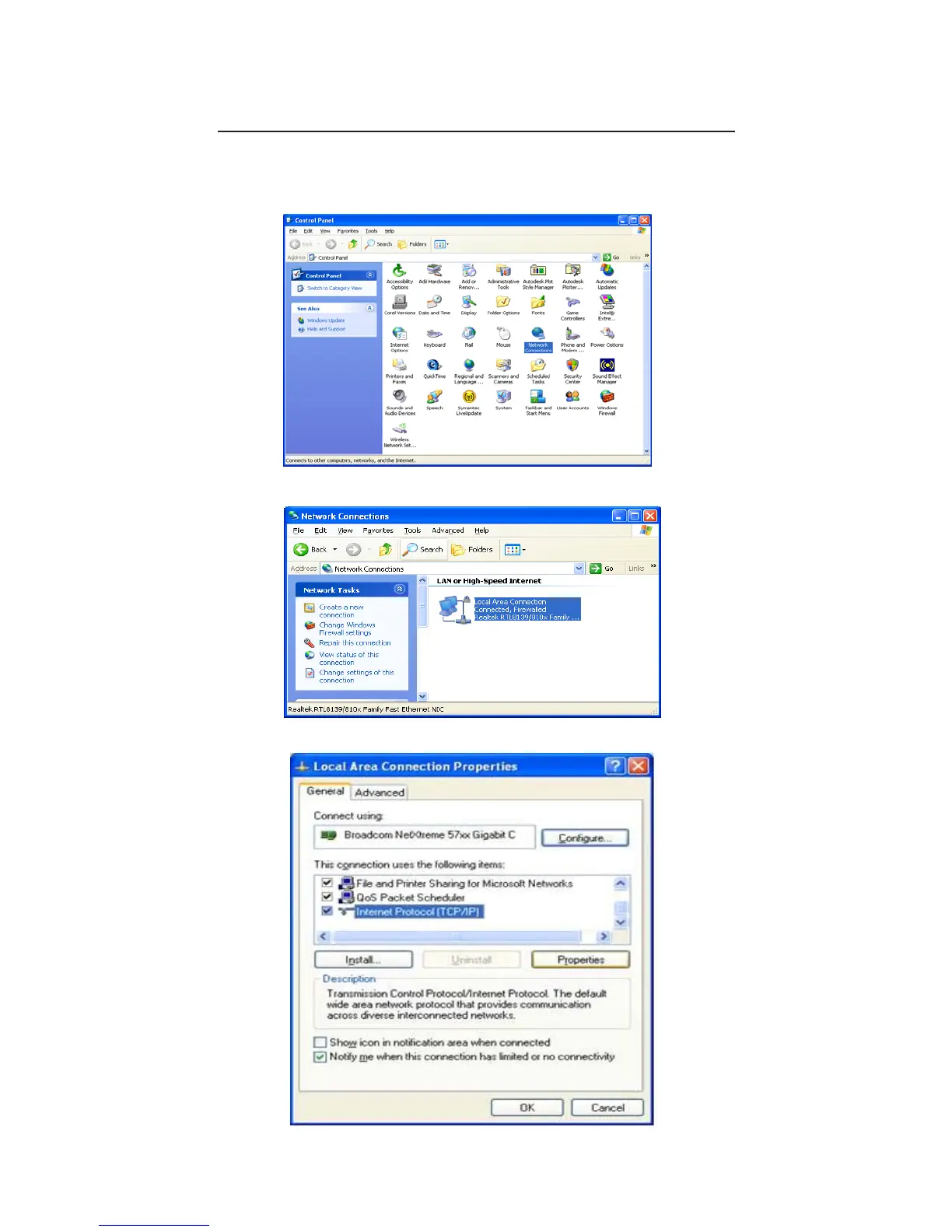 Scroll down to “Internet Protocol (TCP/IP) and click on the “Properties” button.