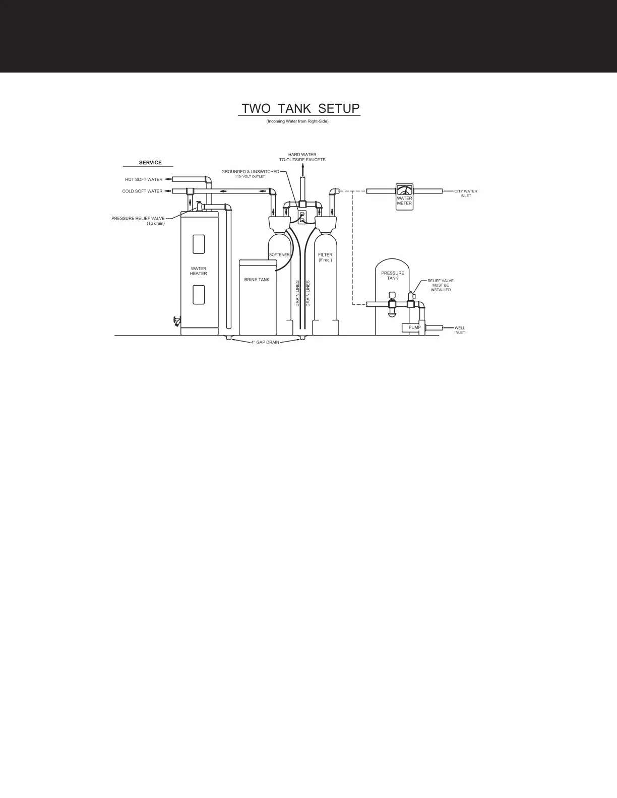 • All plumbing lines not requiring “soft” water should be connected “upstream” of the softener.