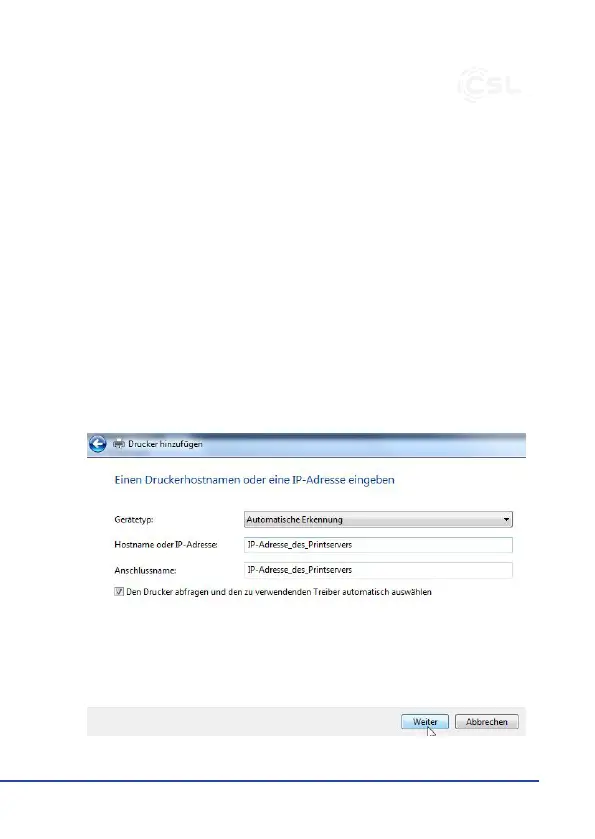 Nel collegamento, immeere l'indirizzo IP del server di stampa in entrambi i cam-