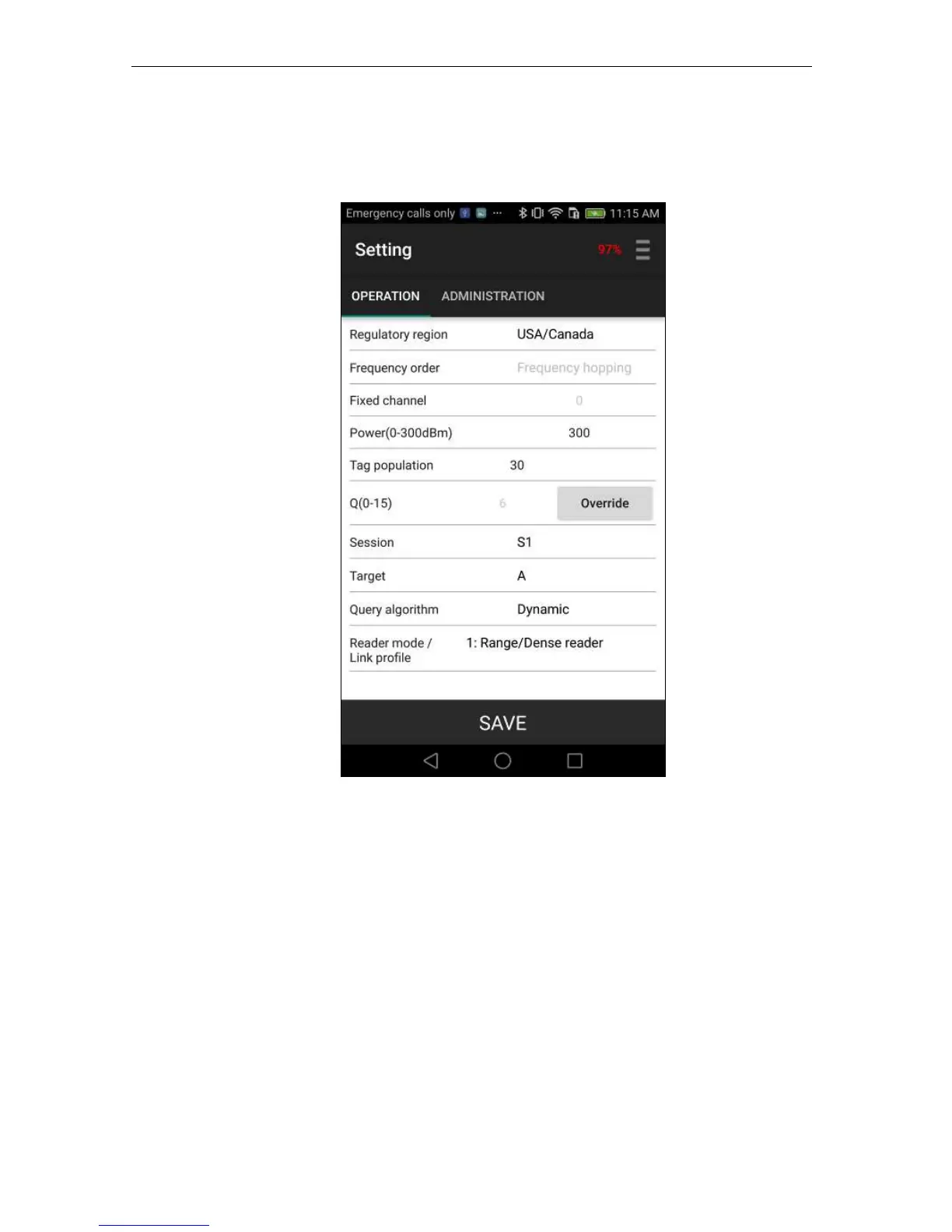 Fixed Channel, Power, Tag Population, Q (override), Session, Target, Query Algorithm, and