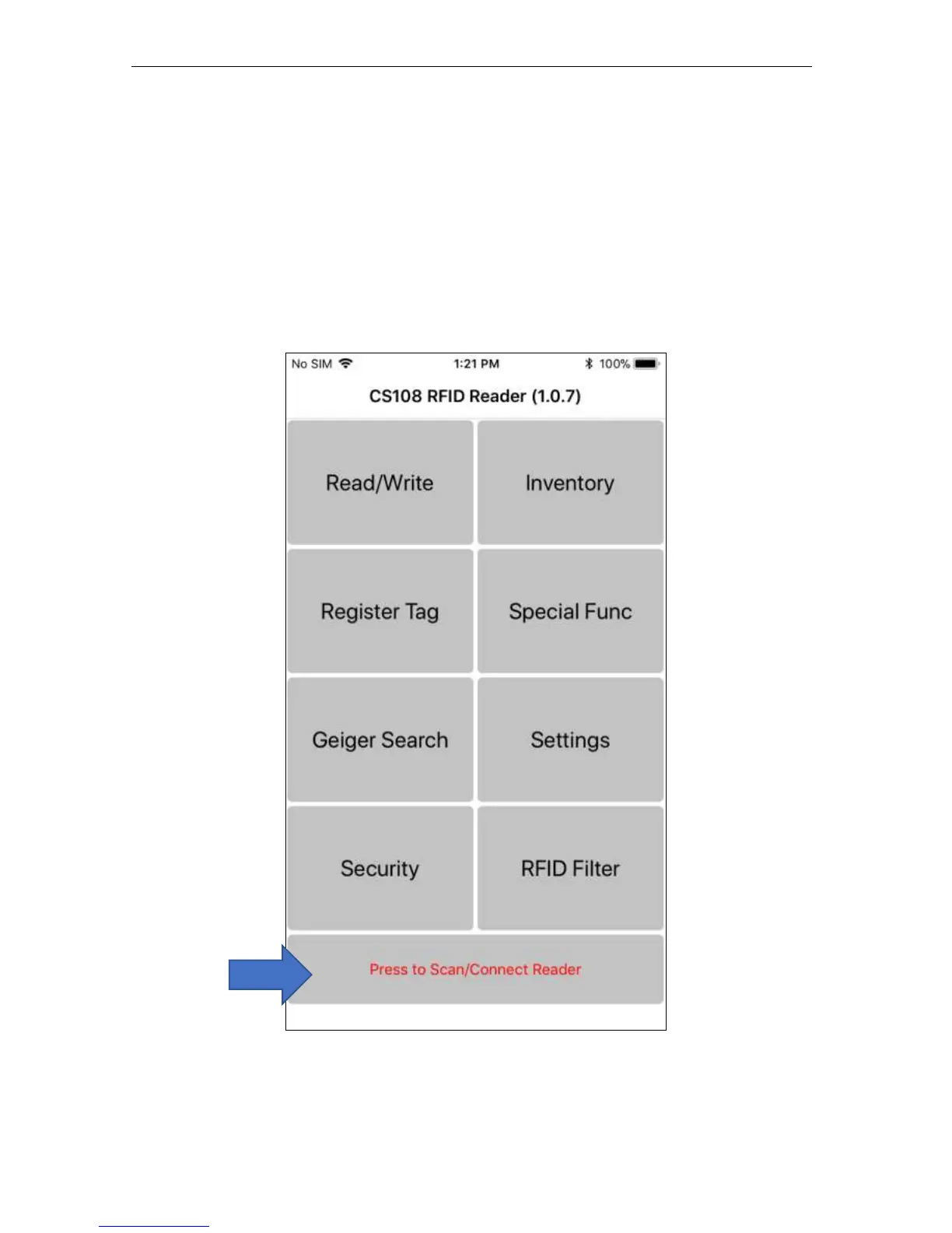 To connect, press the button with text “Press to Scan/Connect Reader” to begin searching and