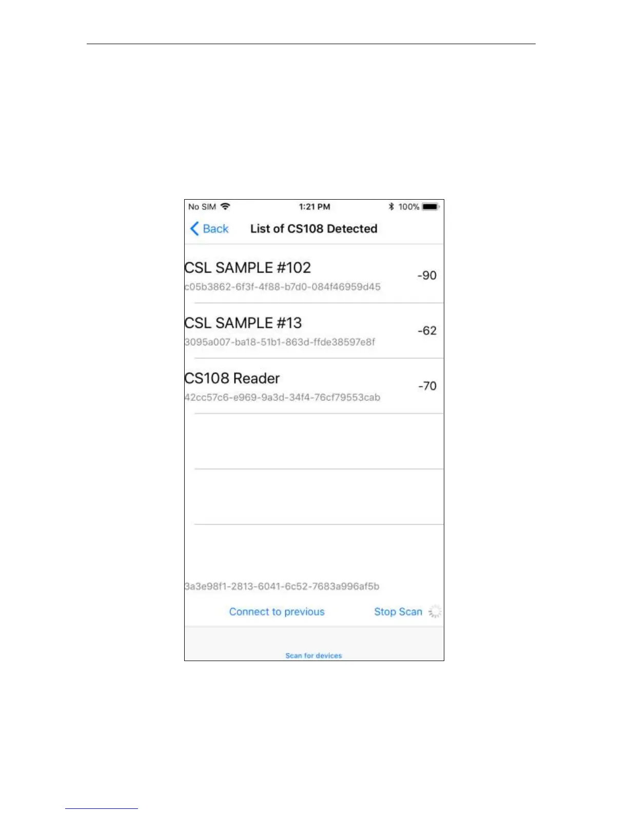 CS108 connection on an iPhone OS. The CS108 Application provides this functionality.