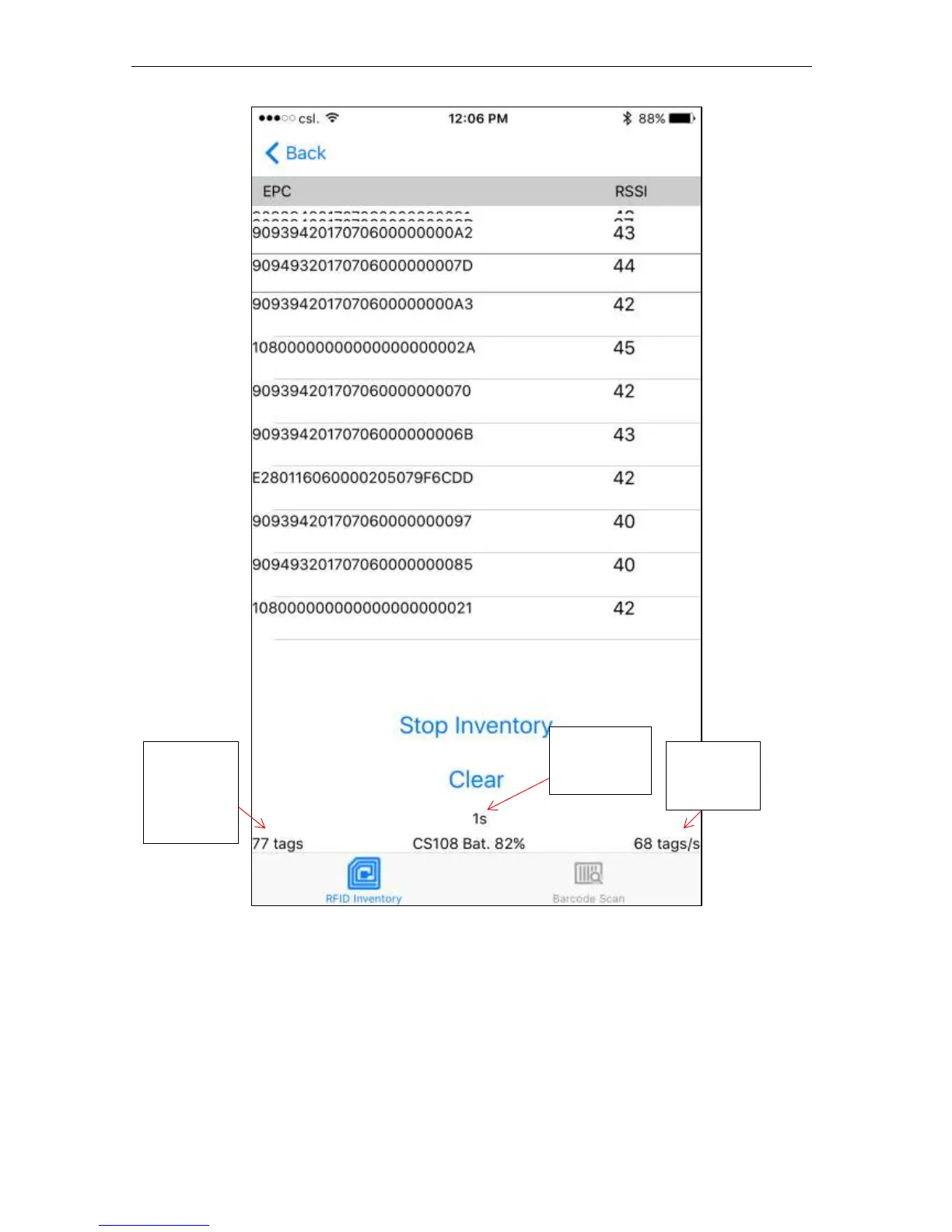 A summary of tags read appears at the bottom of the screen: Total Unique Tags, Read Rate, and