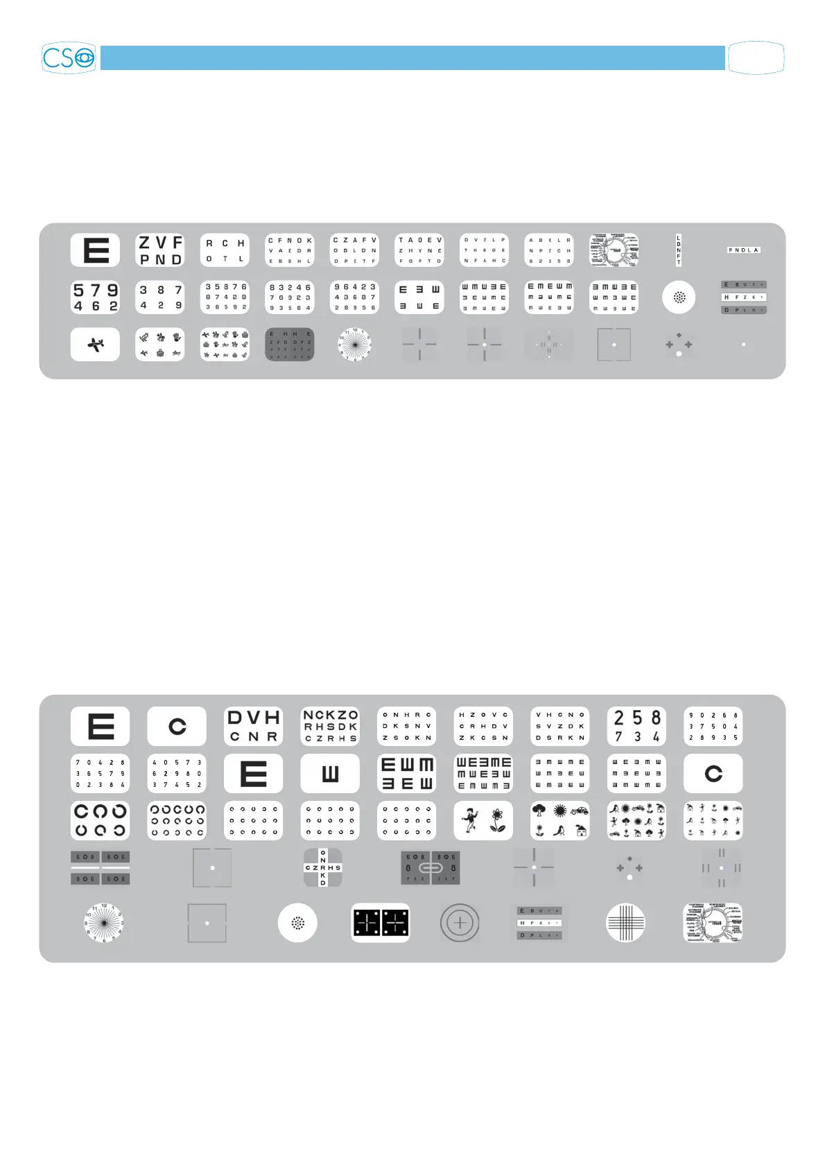 EN ISO 8596 - 8597 specifications), Landolt’s rings, E directionals, num-