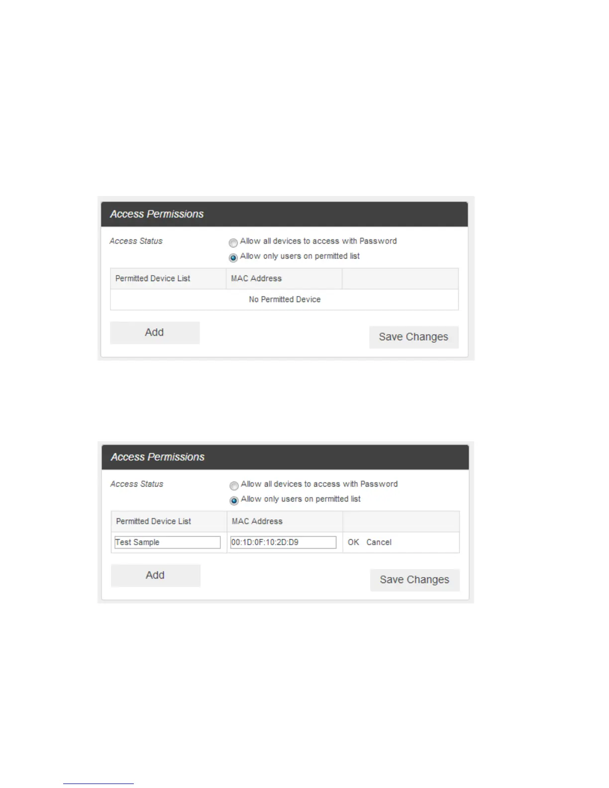 7. When you are finished adding permitted devices, click Save Changes.