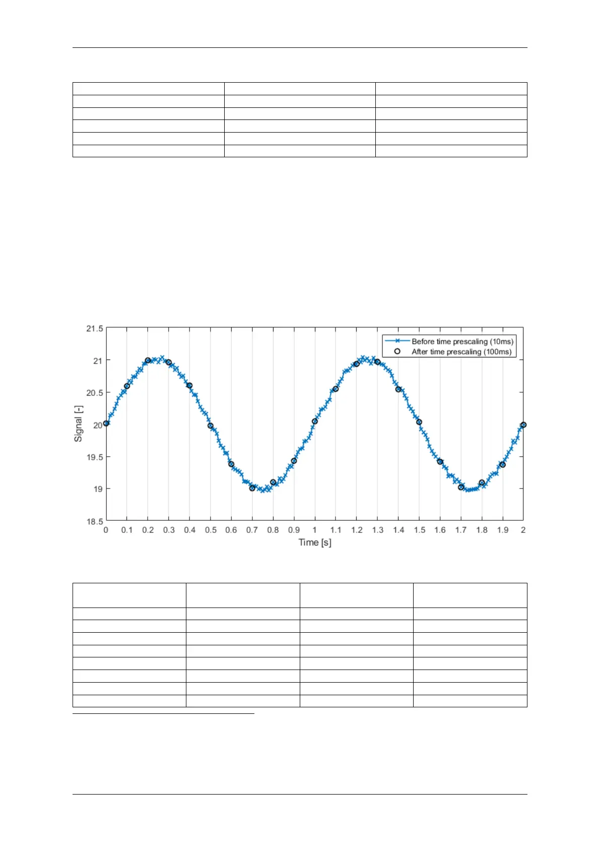 Example: A slowly changing temperature measurement broadcasted every 10 ms (100Hz). Prescaled to