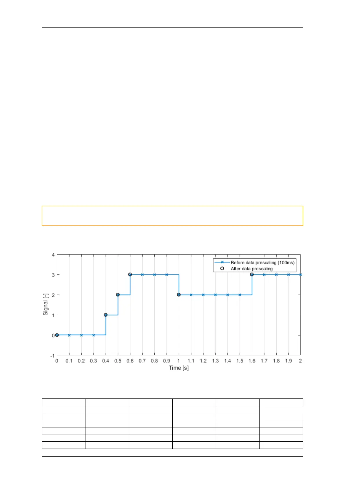 Example: A discretely changing signal is broadcasted every 100 ms (10Hz). A data prescaler is used