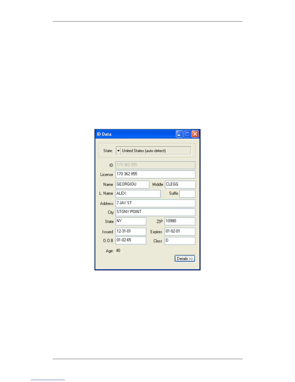The ID Data window shows the data retrieved either from the scanned image by OCR