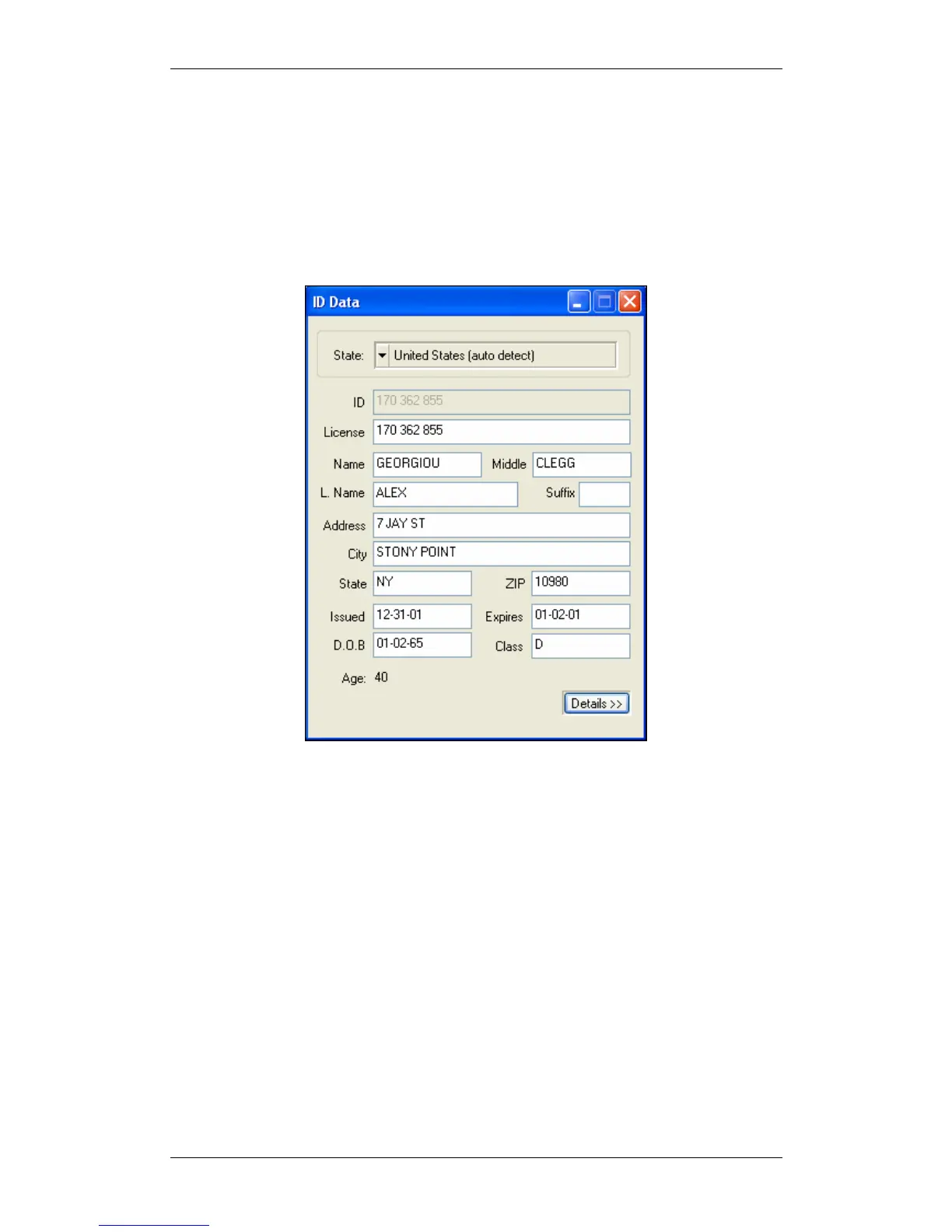The ID Data window shows the data retrieved either from the card. Irrelevant fields