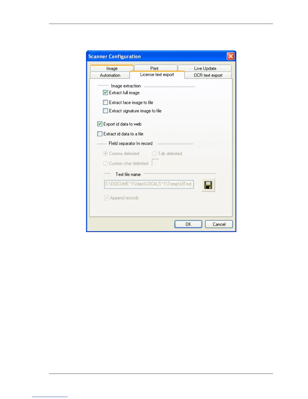 • Extract ID data to a file: Extracts the textual information from the ID card image