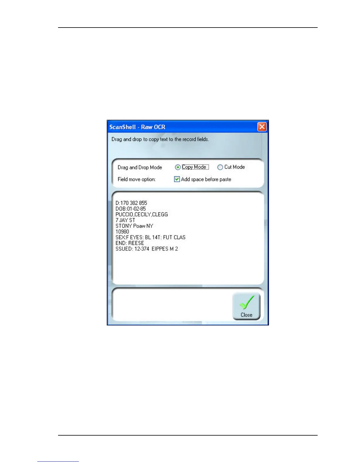 Figure 5-6: Manual OCR window