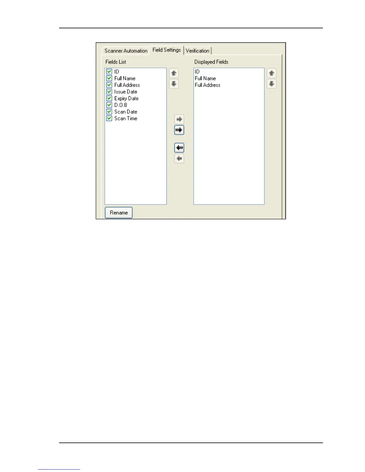 Figure 9-6: Field selection screen