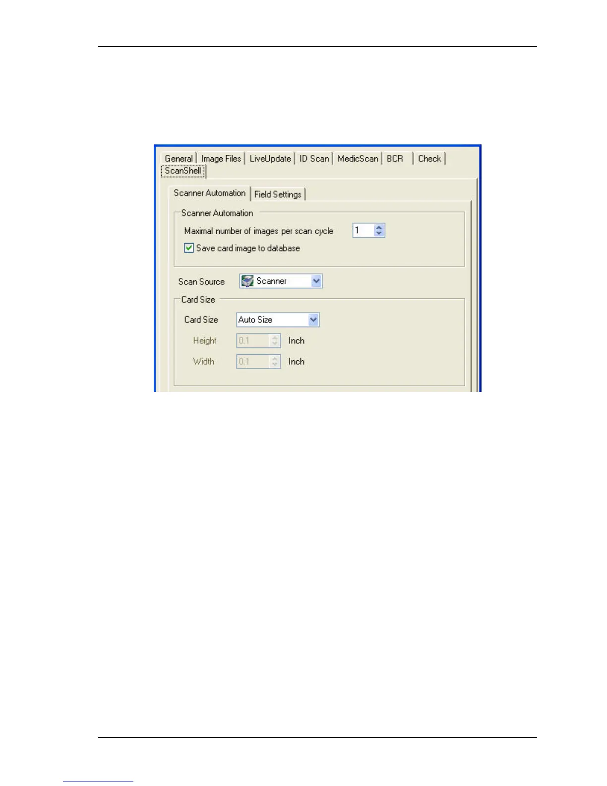 Save card image to database – Save an image of the card in the scanned record