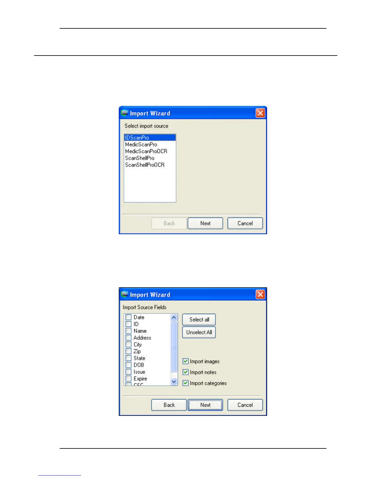 Figure 13-1: Import Wizard - Selection of previous CSSN programs' database