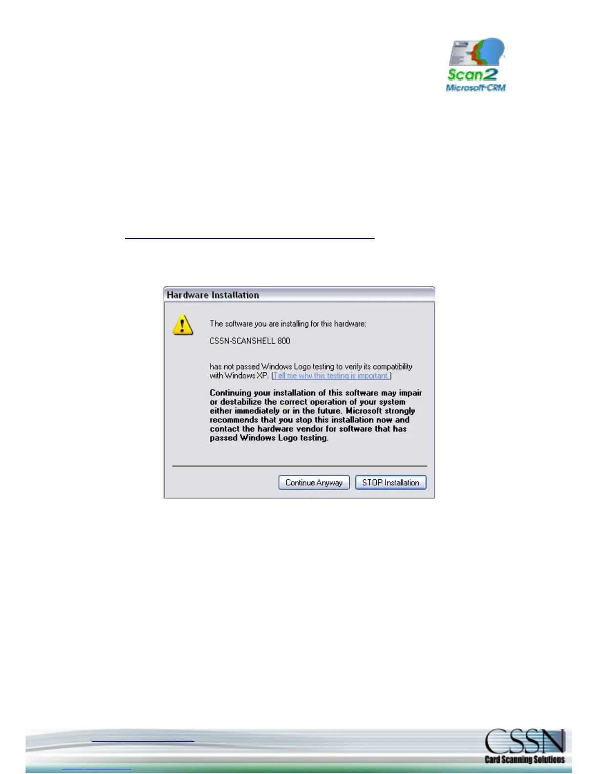 • Click Continue Anyway. The installation of Scanshell scanner drivers is safe for