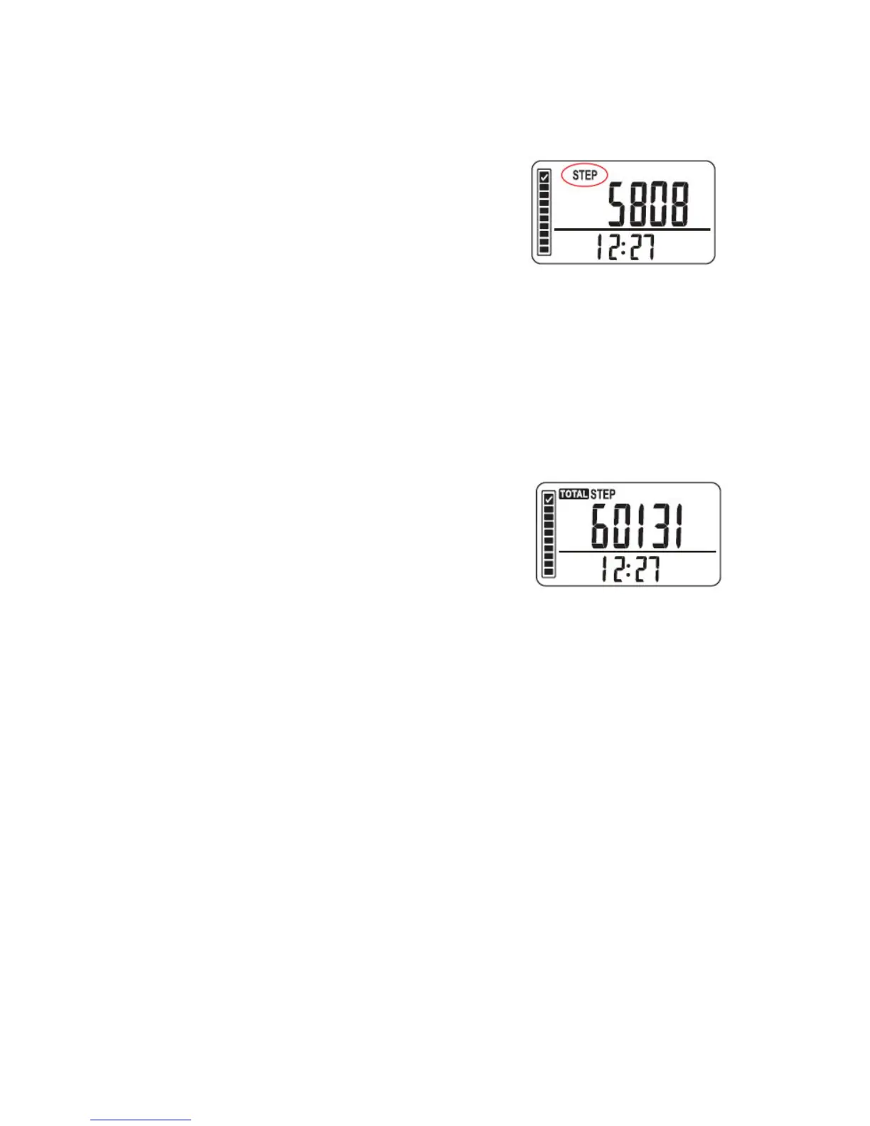 While in “TOTAL STEP” mode press the SET button repeatedly to view: