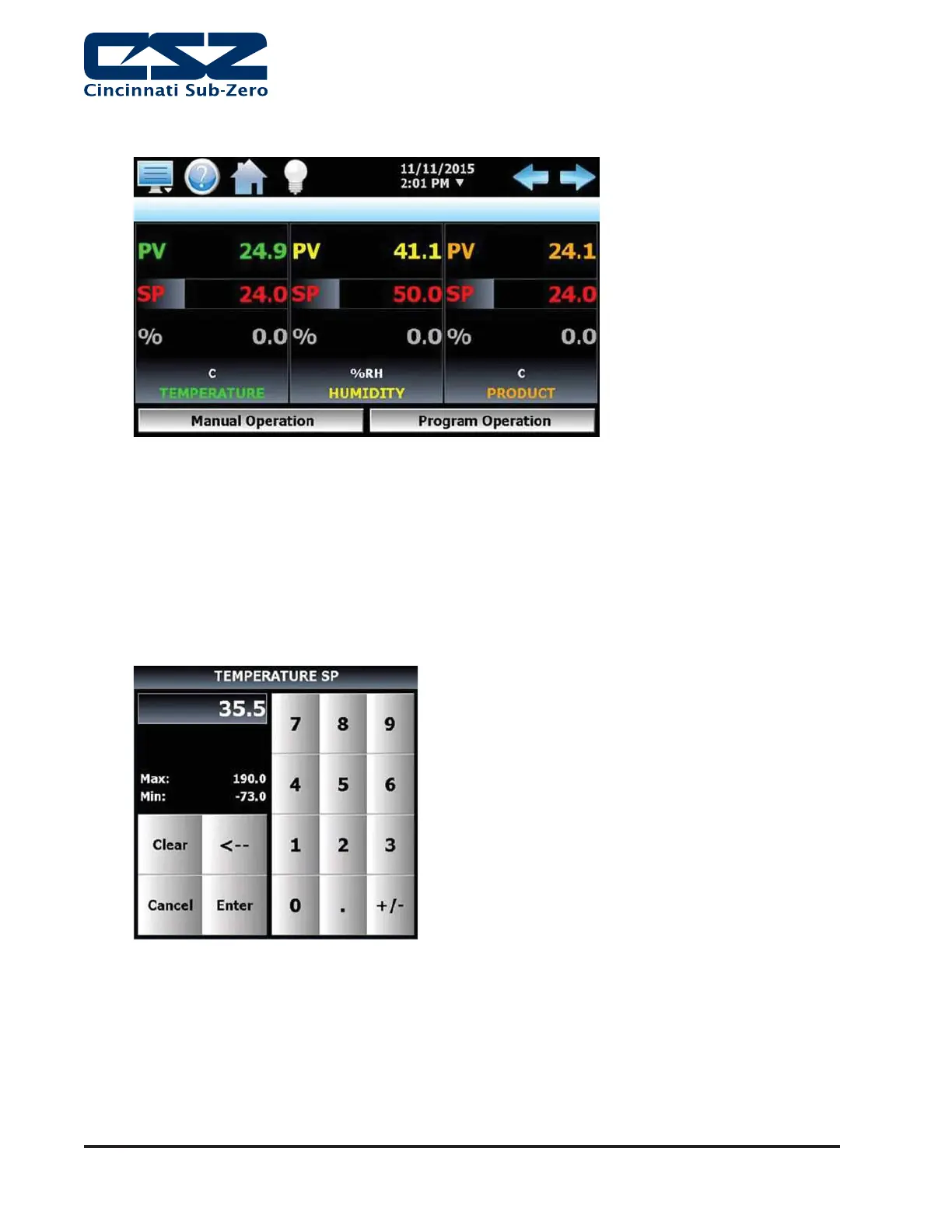 shown on the screen. Enter the desired setpoint value and press the “Enter” button.