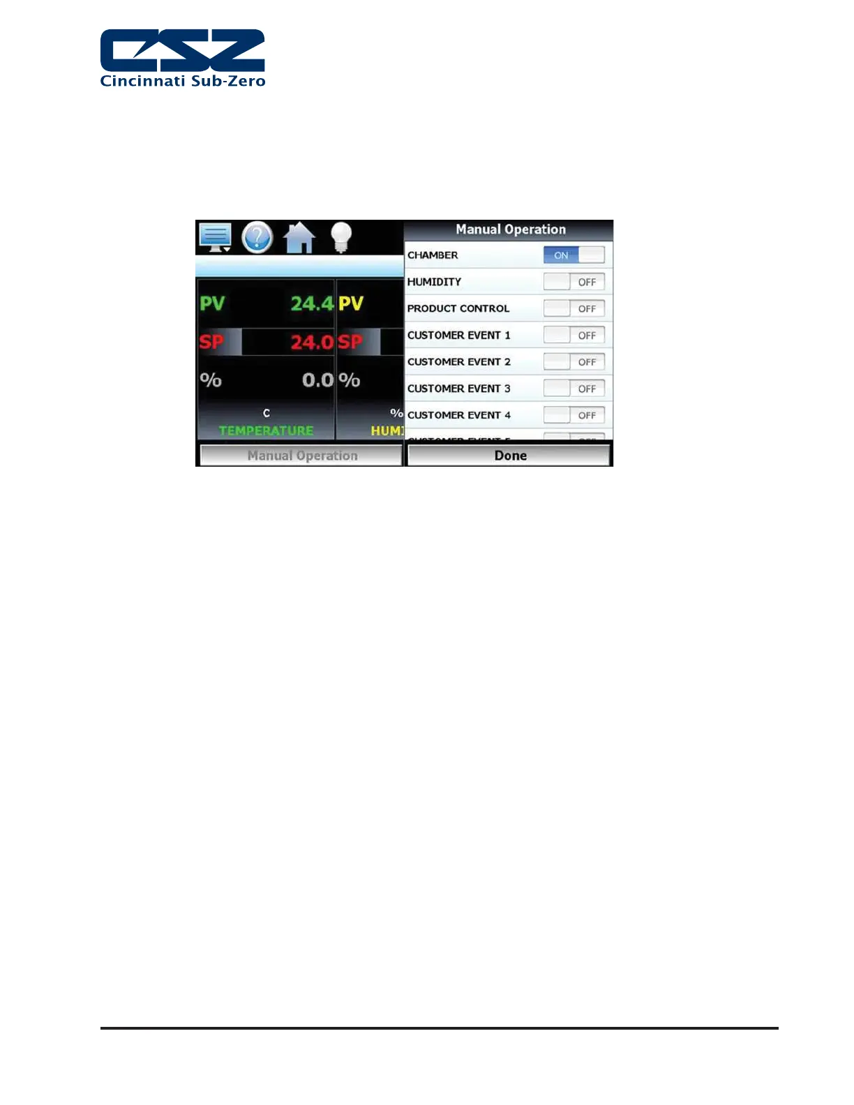 MANUAL EVENT CONTROL (TURNING THE CHAMBER ON/OFF)