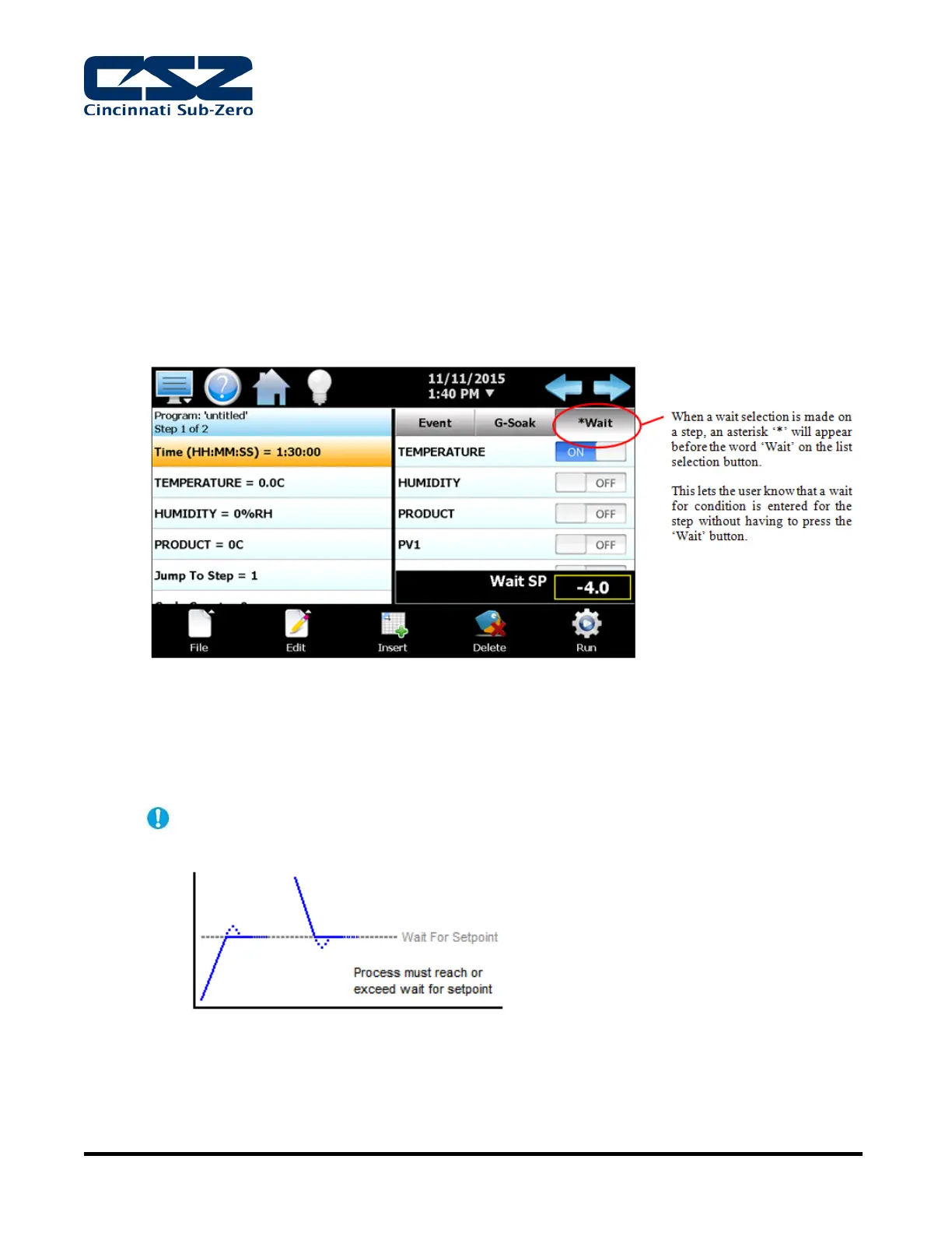 for, and if a process variable is selected (Loop or monitor input) enter the set point for the wait.