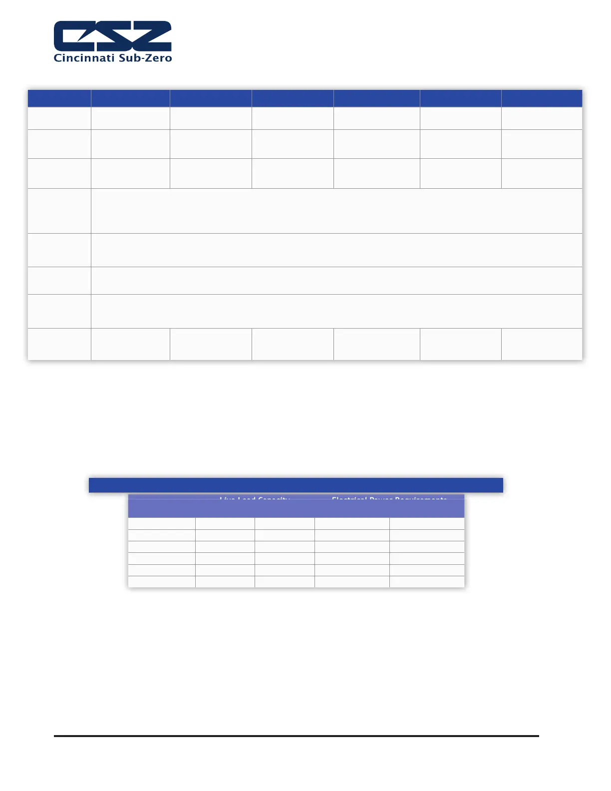 Table 2-4. ZP Load Capacity and Electrical Requirements