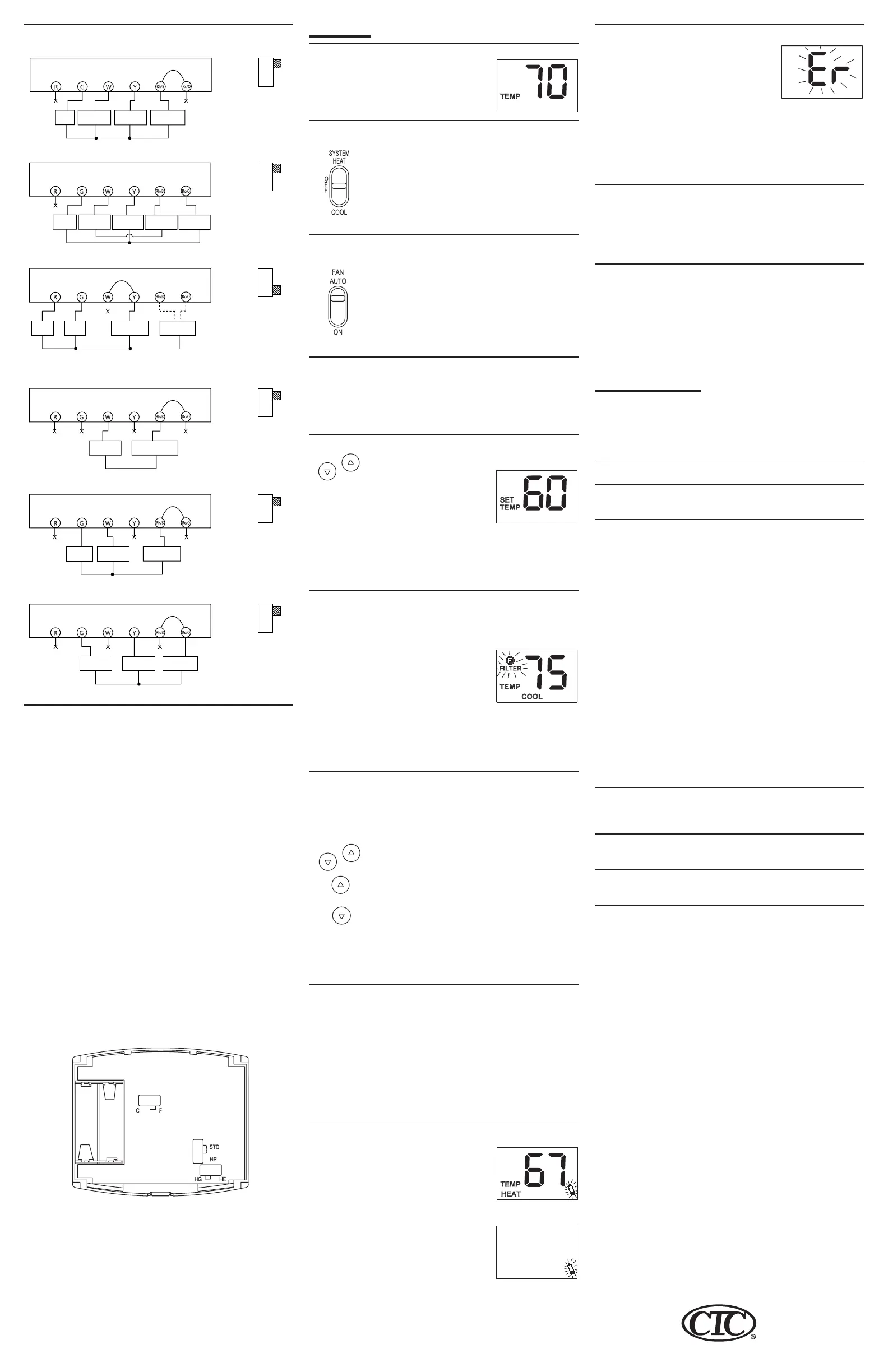 Note: If the thermostat is in Low Battery warning condition, the back-
