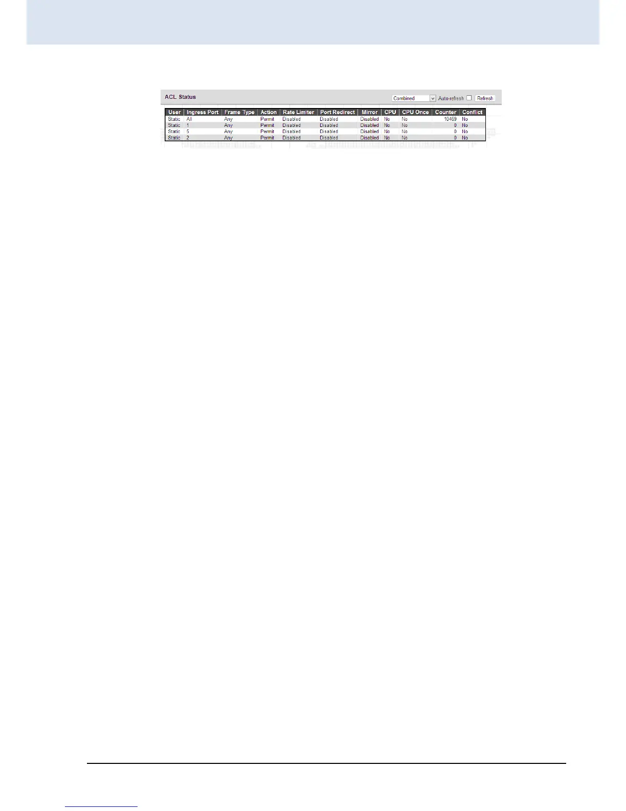 This page shows the ACL status by different ACL users. Each row describes the ACE that is defined. It is a conflict if a