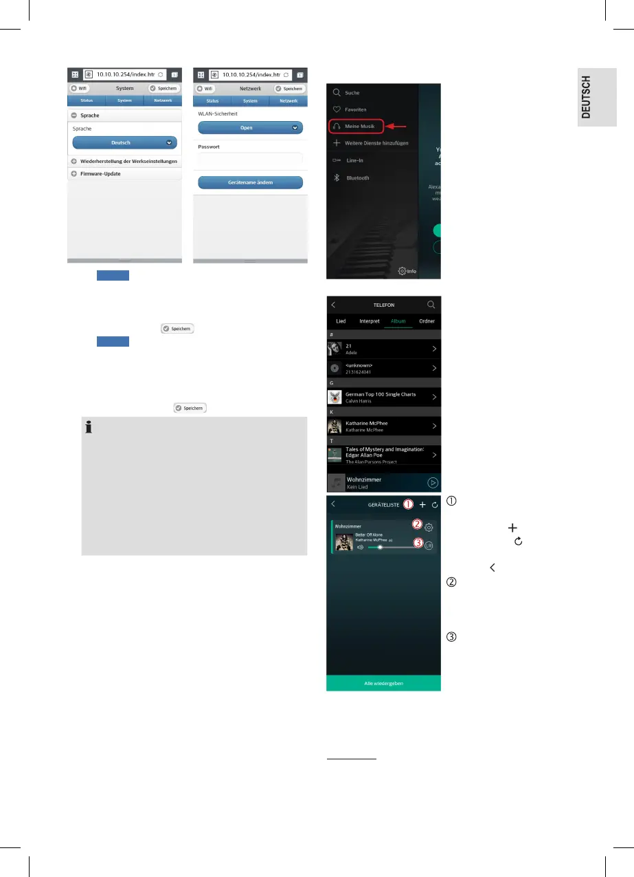 Lautsprecher-Einstellseite ändern, das Gerät auf die