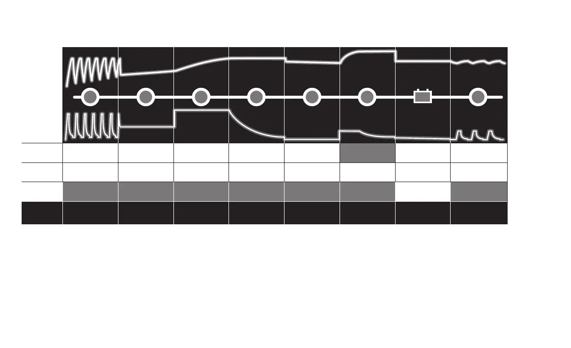 Detects sulphated batteries. Pulsing current and voltage, removes sulphate from the lead plates