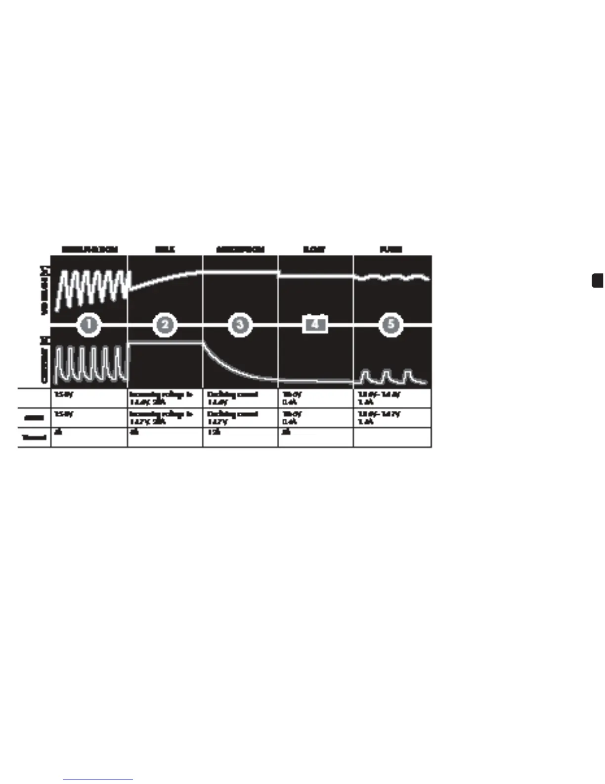 Detects sulphated batteries. Pulsing current and voltage, removes sulphate from the lead plates