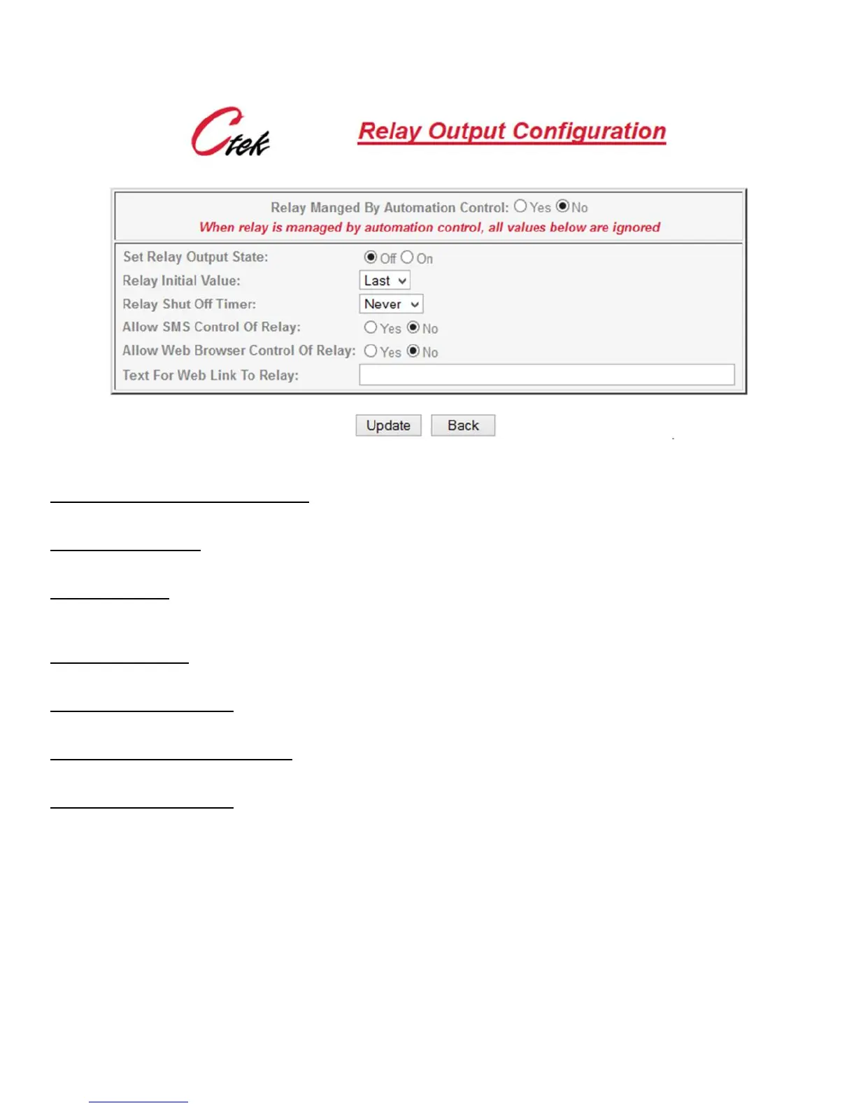 Relay Managed By Automation Control – When set to Yes the relay is controlled as an Output Pin with the Automation