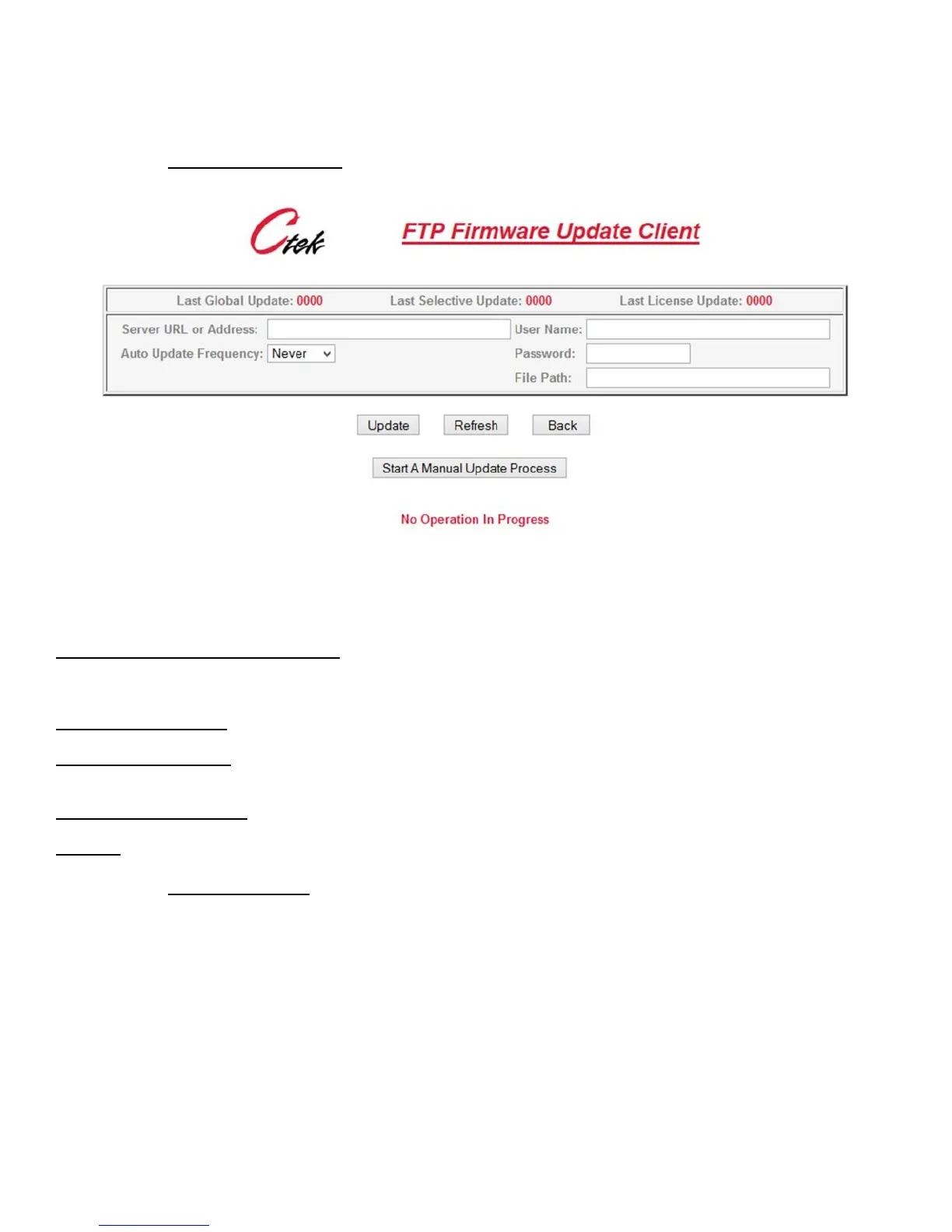 File Path – Identifies the directory path with the FTP update server to be used.