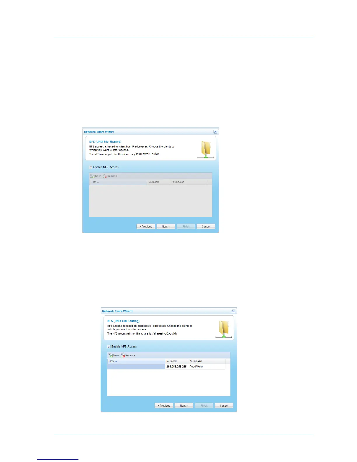 b Add the IP addresses of clients that should be allowed NFS access to network share,