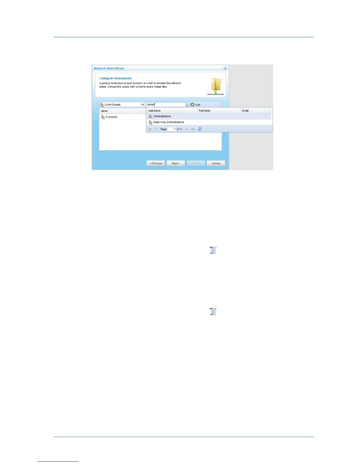 16 In each user and user group's row, click in the Permission column, then select the desired