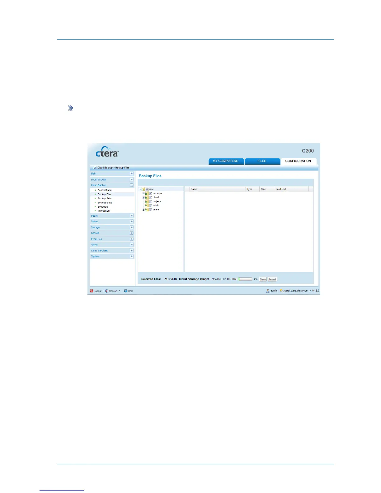 1 In the Configuration tab's navigation pane, click Cloud Backup > Backup Files.