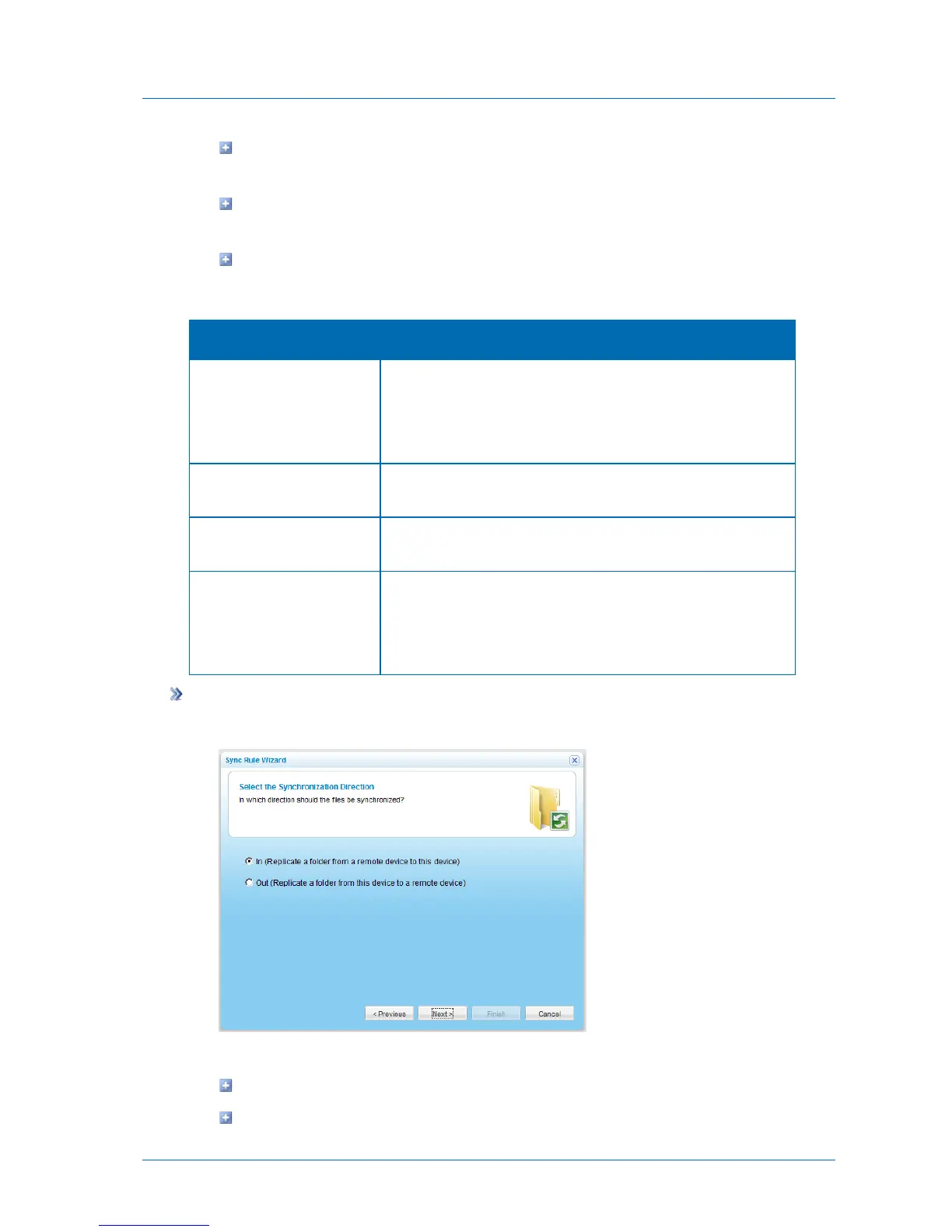 To synchronize a folder from the appliance to a remote server, choose Out.