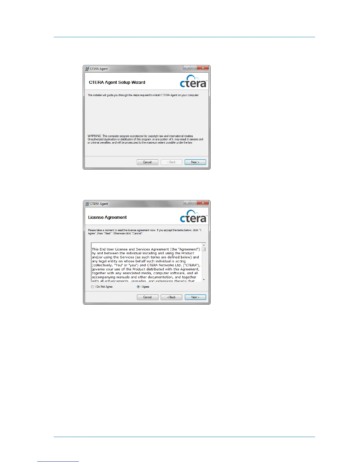 The CTERA Agent Setup Wizard opens, displaying the CTERA Agent Setup Wizard screen.