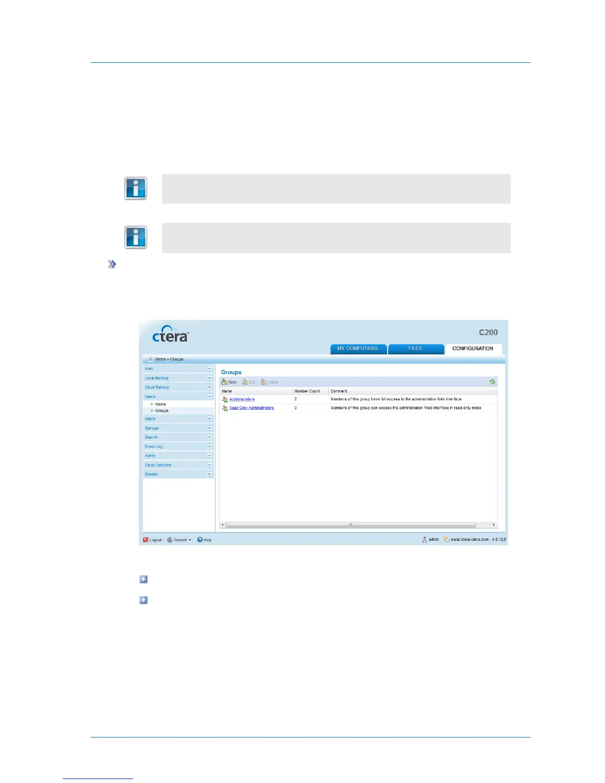 1 In the Configuration tab's navigation pane, click Users > Groups.