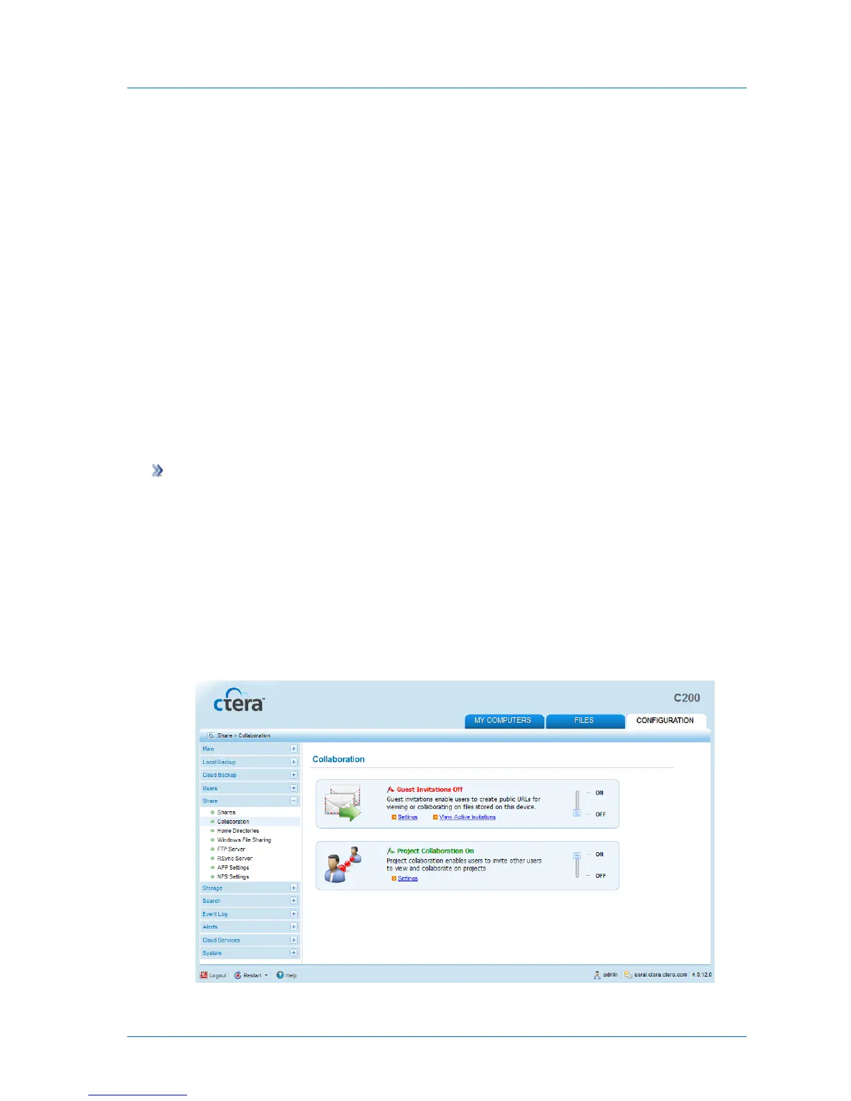1 In the Configuration tab's navigation pane, click Share > Collaboration.