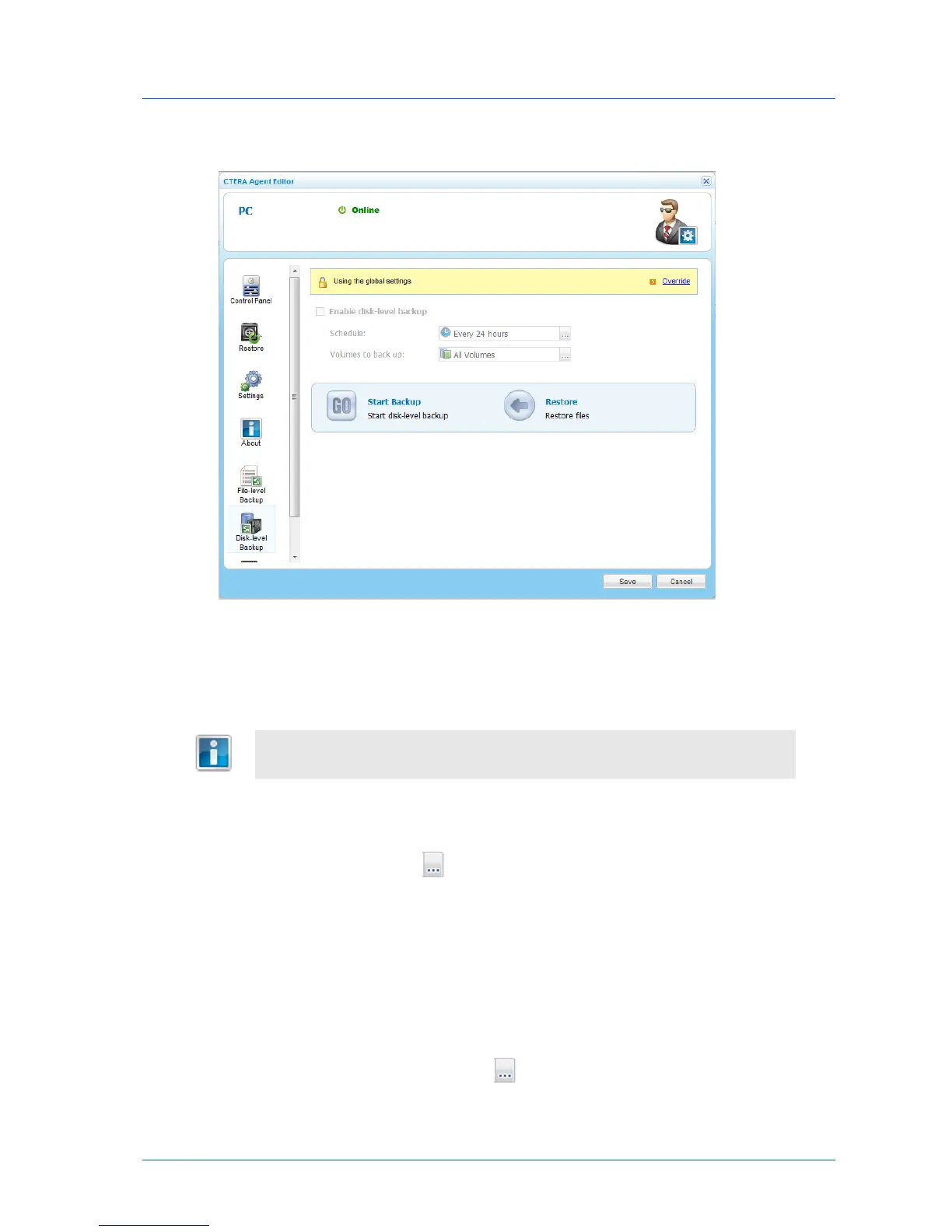 3 Click Override, to override the global settings for disk-level backup.