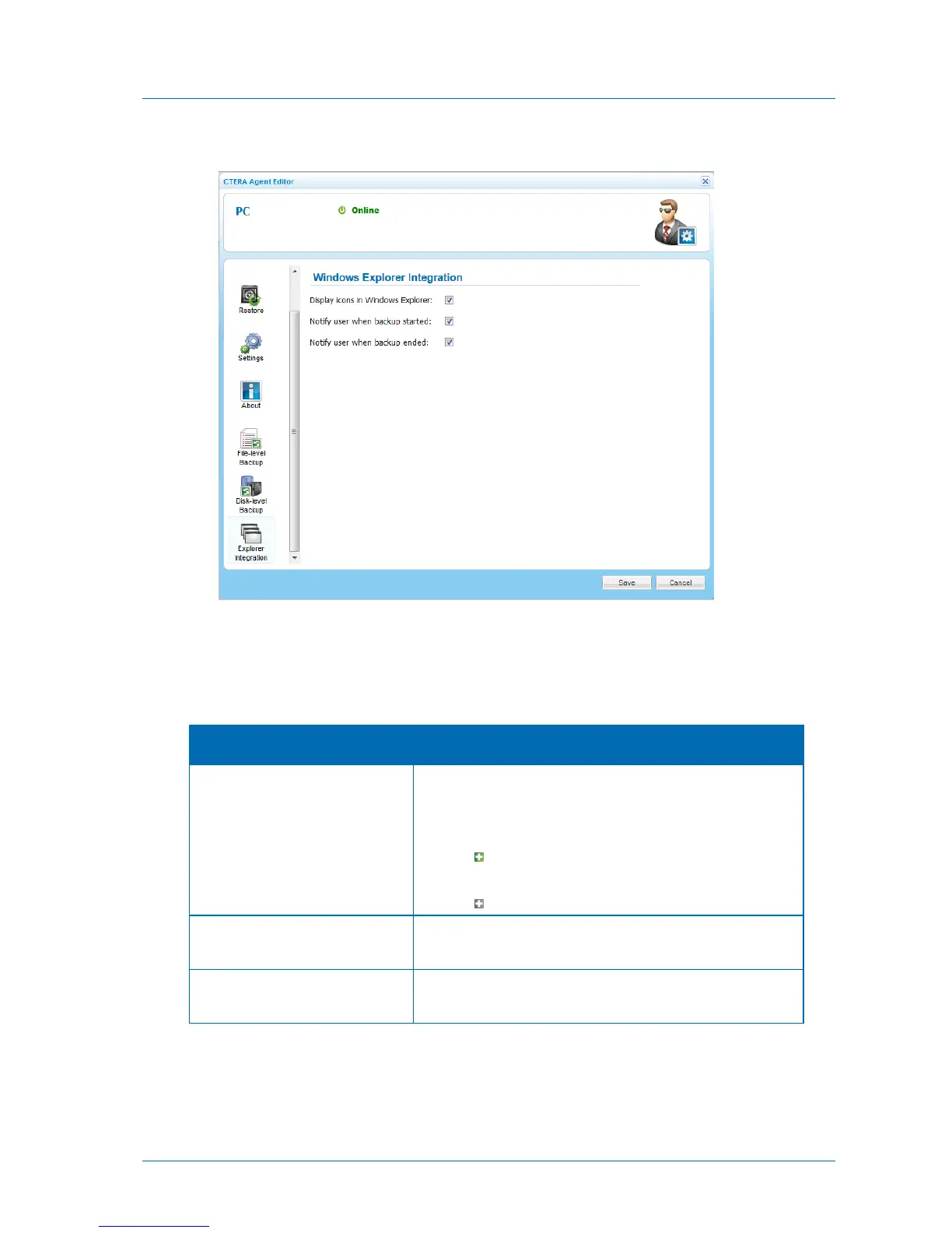 Select this option to display CTERA backup icons in Windows