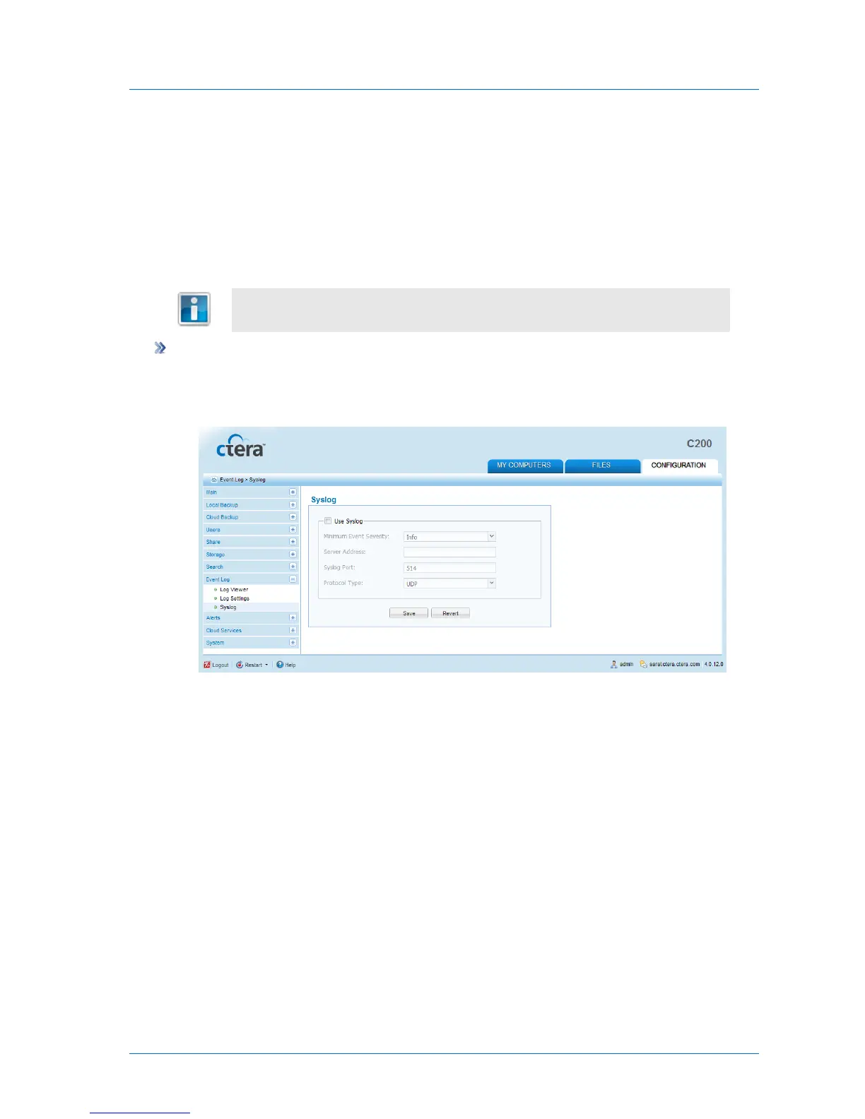 If desired, you can configure the appliance to send logs to a Syslog server located on your